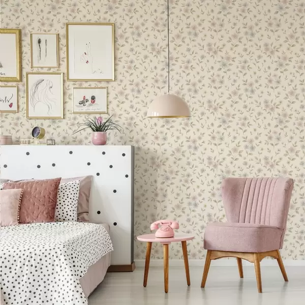 Papel de parede Flores de campo em tons pastel sobre fundo creme Nr. a00596