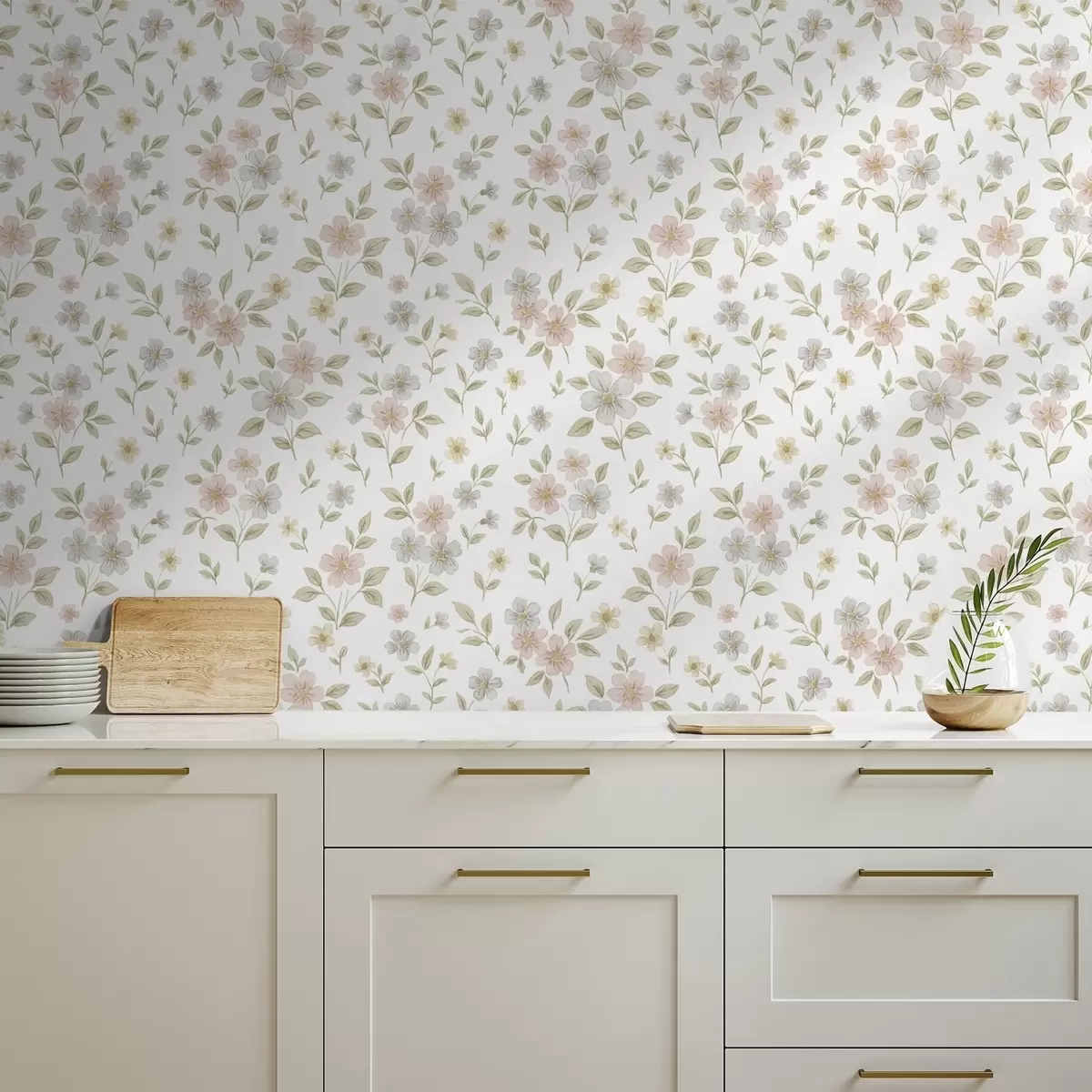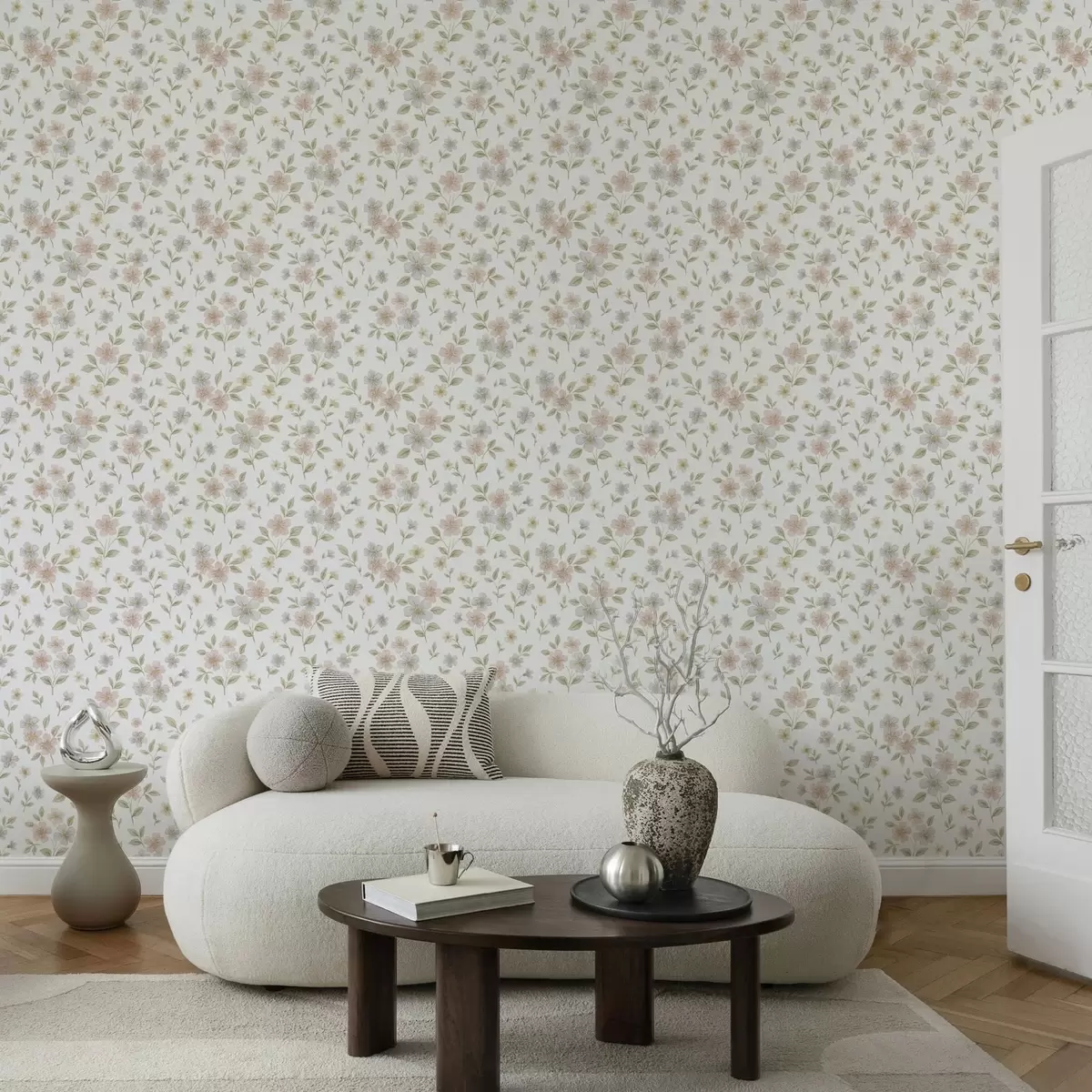 Papel de parede Pequenas flores em aquarela em tons pastéis sobre fundo branco Nr. a00596v1