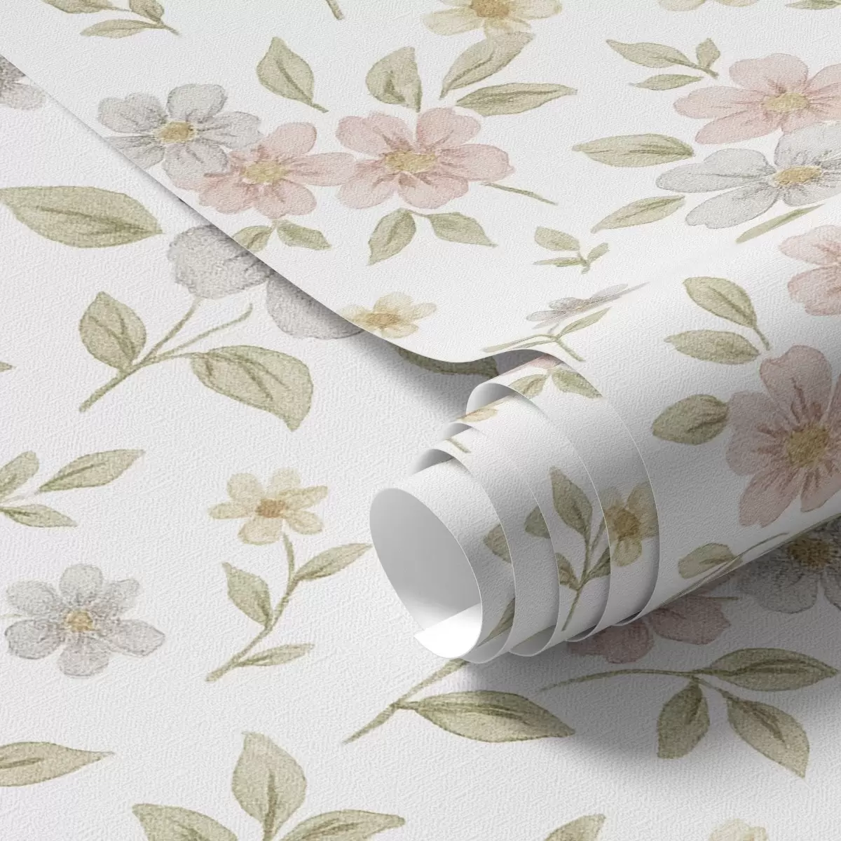Papel de parede Pequenas flores em aquarela em tons pastéis sobre fundo branco Nr. a00596v1