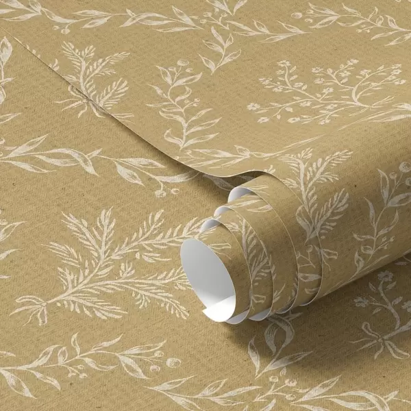 Papel de parede Grinaldas brancas de ervas e flores sobre um fundo mostarda a00599