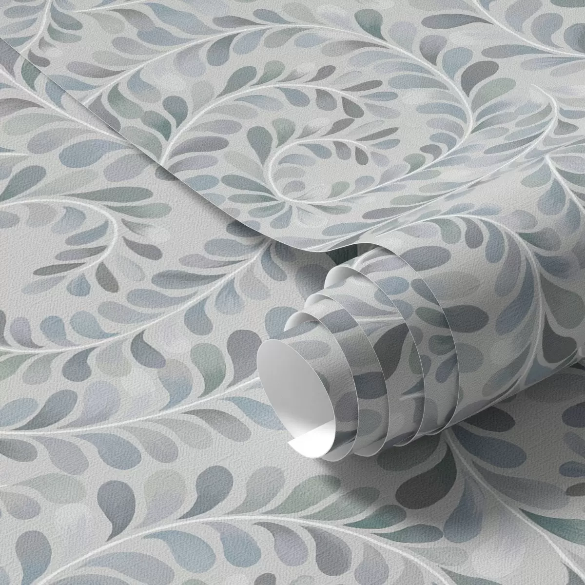 Papel de parede Folhas em espiral em uma paleta de tons azul-cinza-verde Nr. a00602