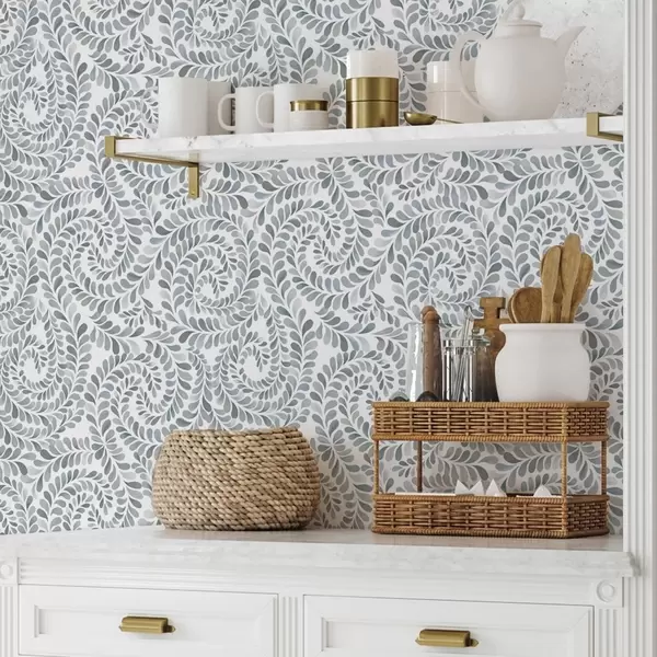Papel de parede Espirais folhosas em tons frios de cinza-azulado a00602v1