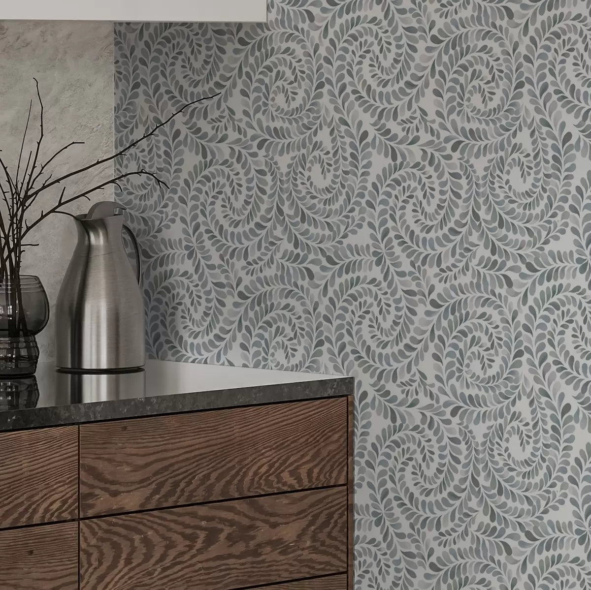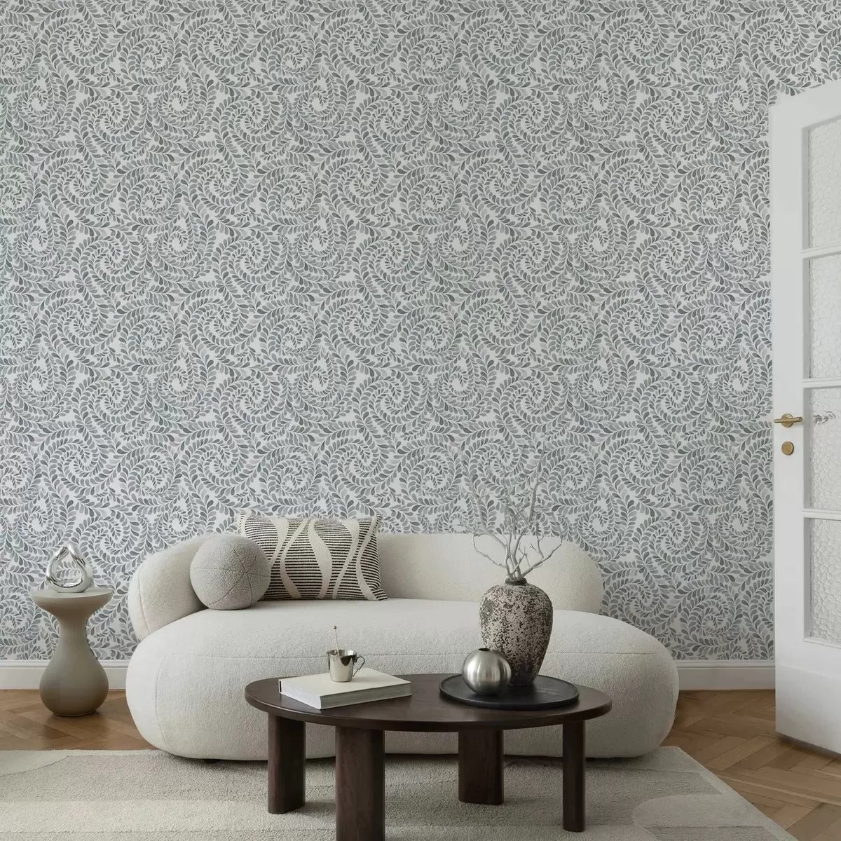 Papel de parede Espirais folhosas em tons frios de cinza-azulado Nr. a00602v1