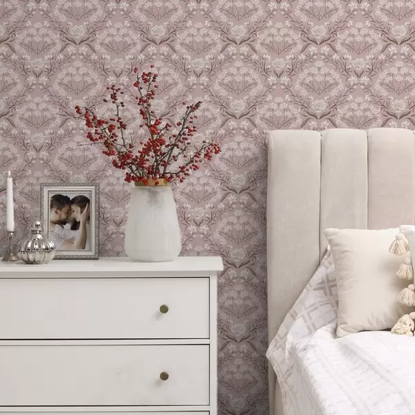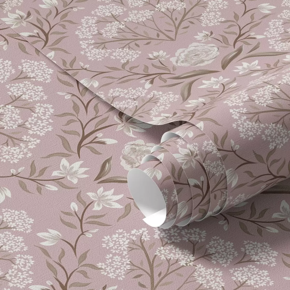 Papel de parede Damasco rosa: peônias, snowdrops e cachos rendados Nr. a00603