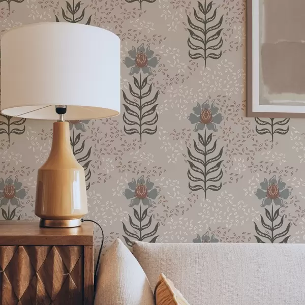 Papel de parede Flores e sementes estilizadas em bege quente Nr. a00604