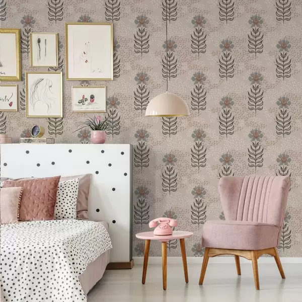 Papel de parede Flores e sementes estilizadas em bege quente Nr. a00604