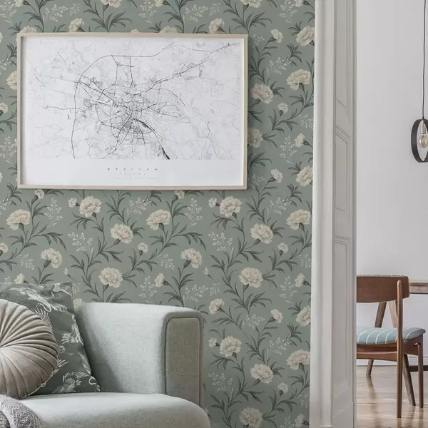 Papel de parede Cravos em pó sobre fundo cinza-azulado, impressão refinada Nr. a00610