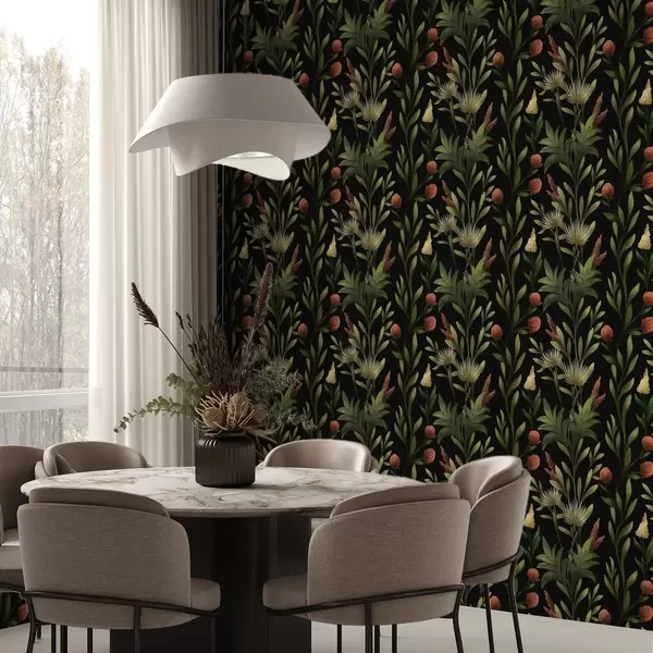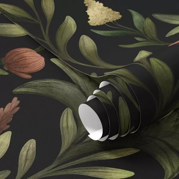 Papel de parede Ervas altas e flores em preto, impressão detalhada Nr. a00620
