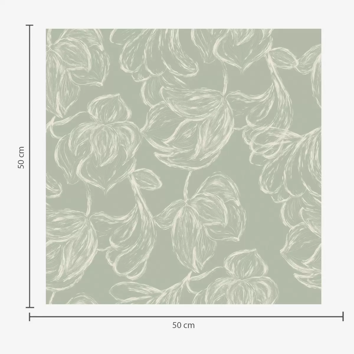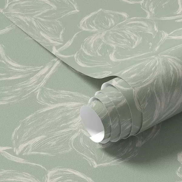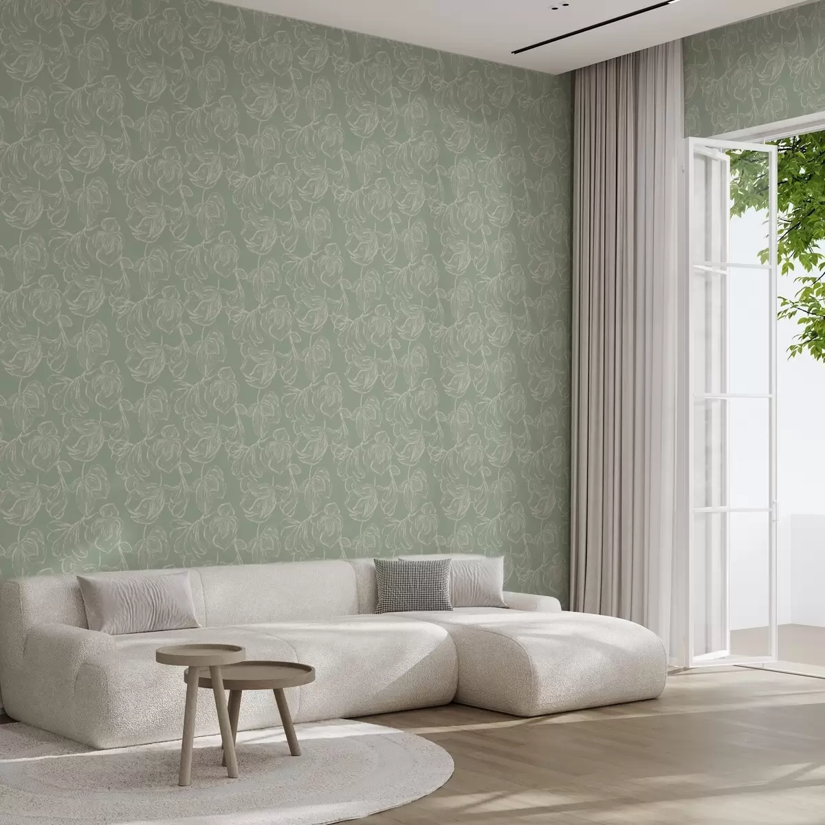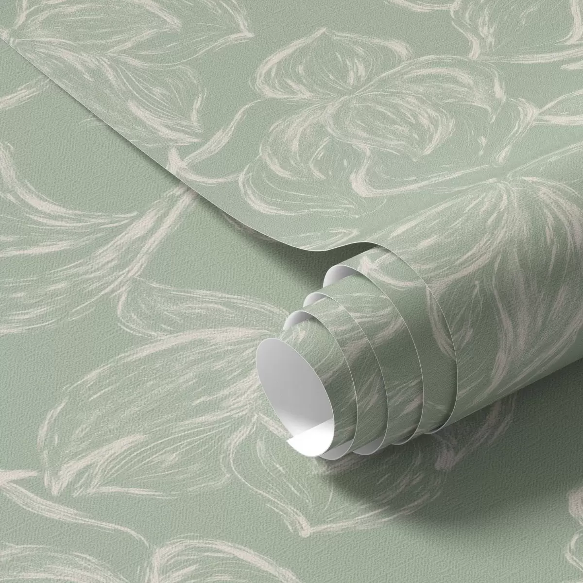 Papel de parede Flores grandes lineares, traços a giz sobre fundo salvia Nr. a00625v1