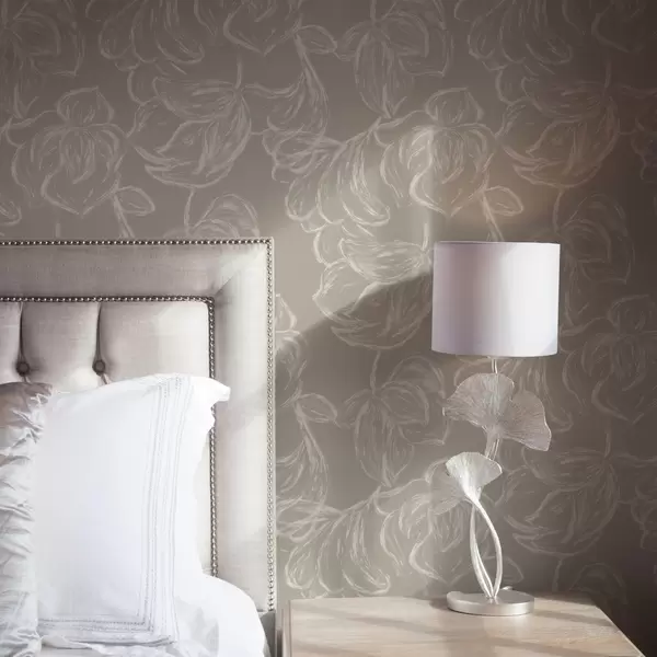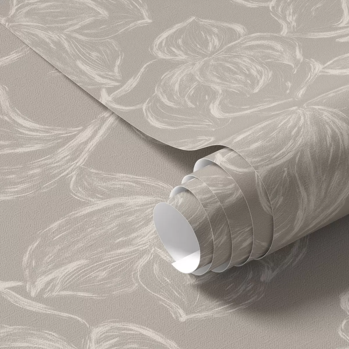 Papel de parede Contornos creme das flores sobre um fundo cinza-claro quente Nr. a00625v2