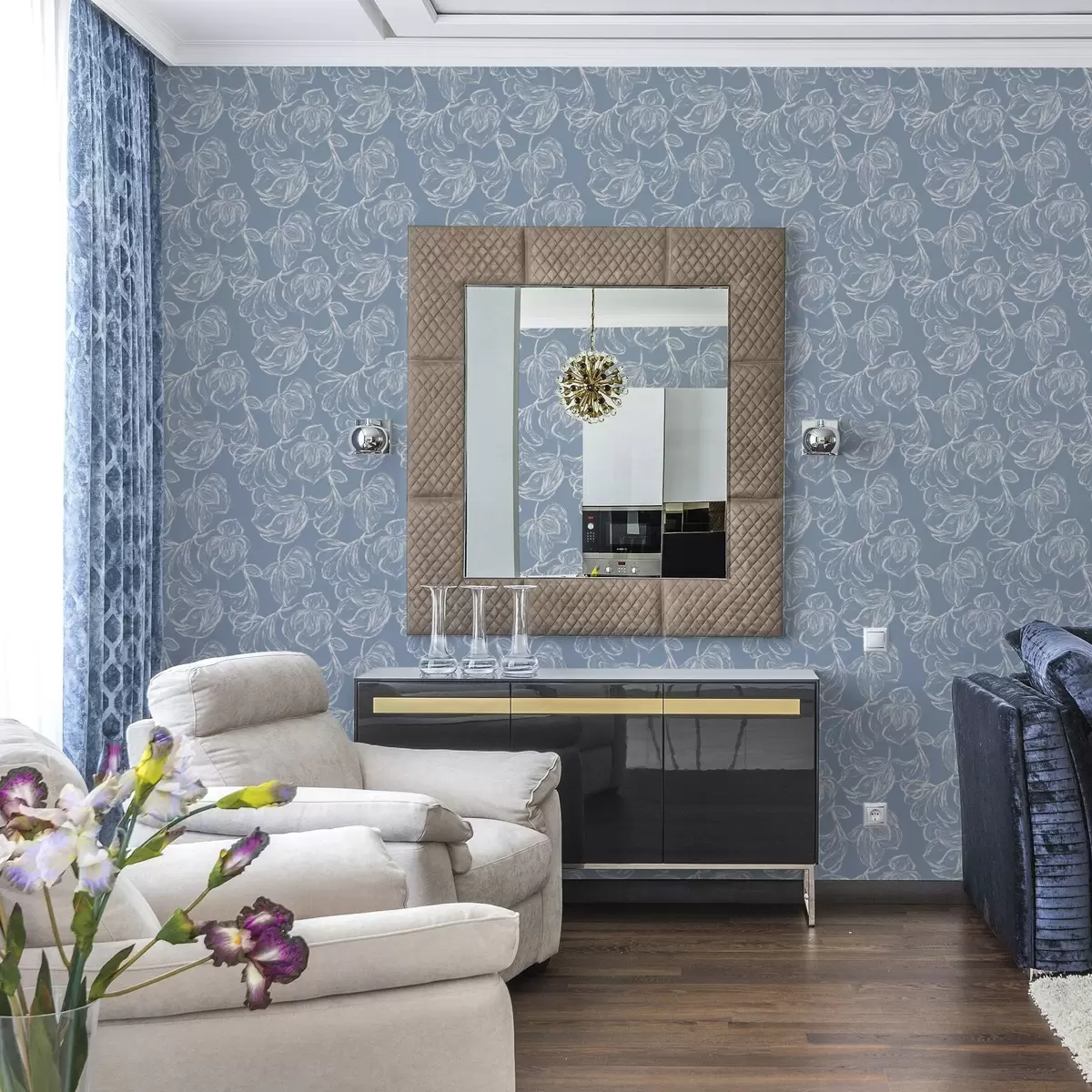 Papel de parede Fundo azul claro com flores delineadas a giz Nr. a00625v3