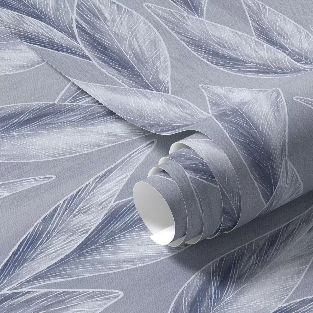 Papel de parede Folhas azul-prateadas sobre fundo azul-acinzentado, padrão gráfico Nr. a00627