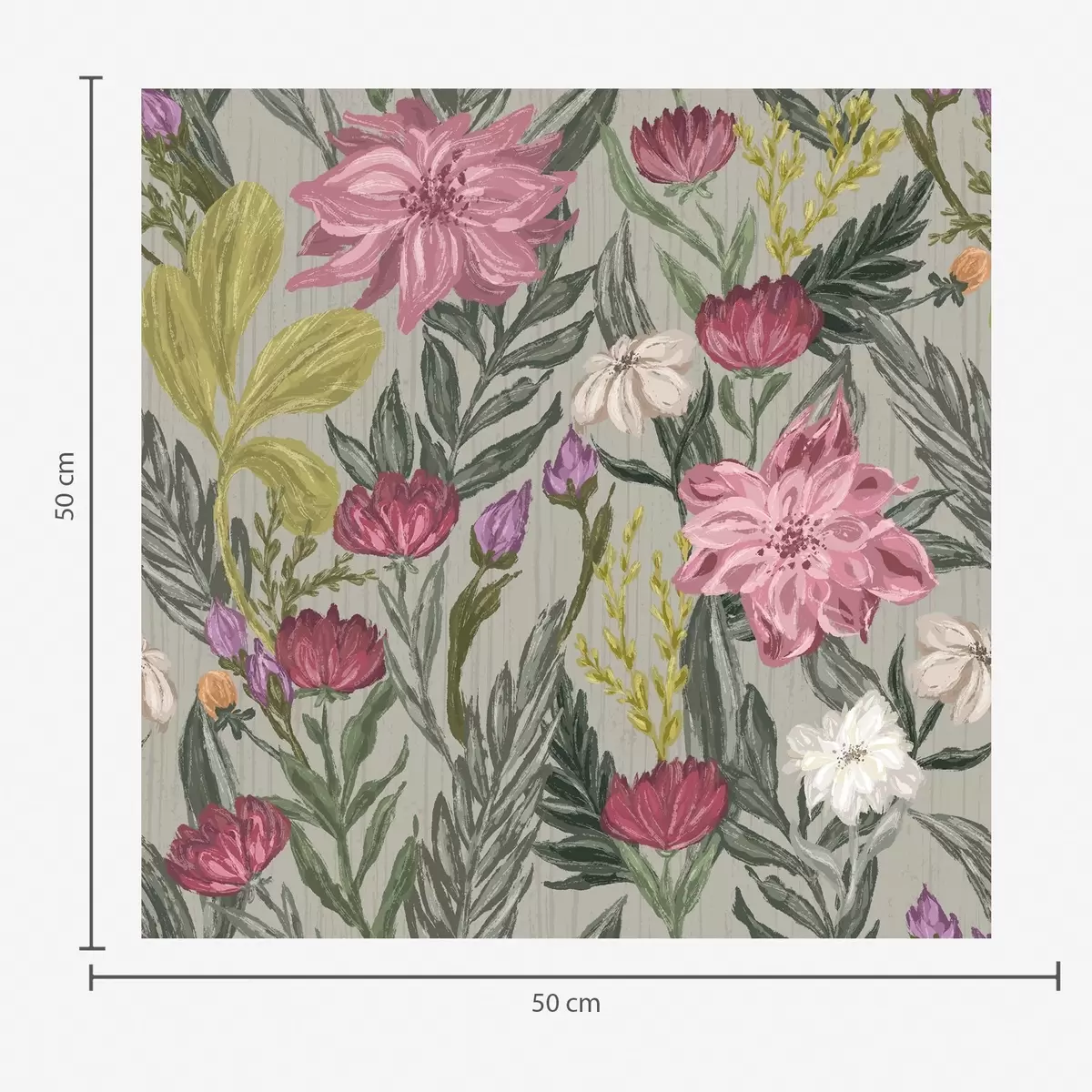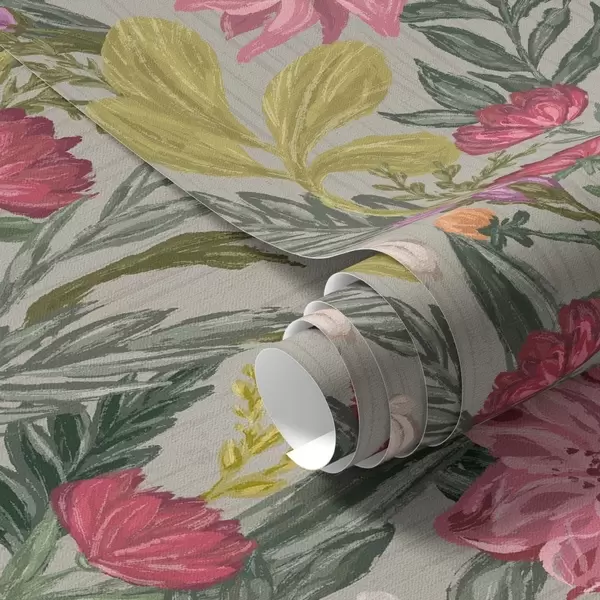 Papel de parede Flores exuberantes em tons de rosa e creme sobre fundo cinza, textura impasto Nr. a00629