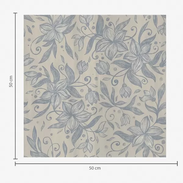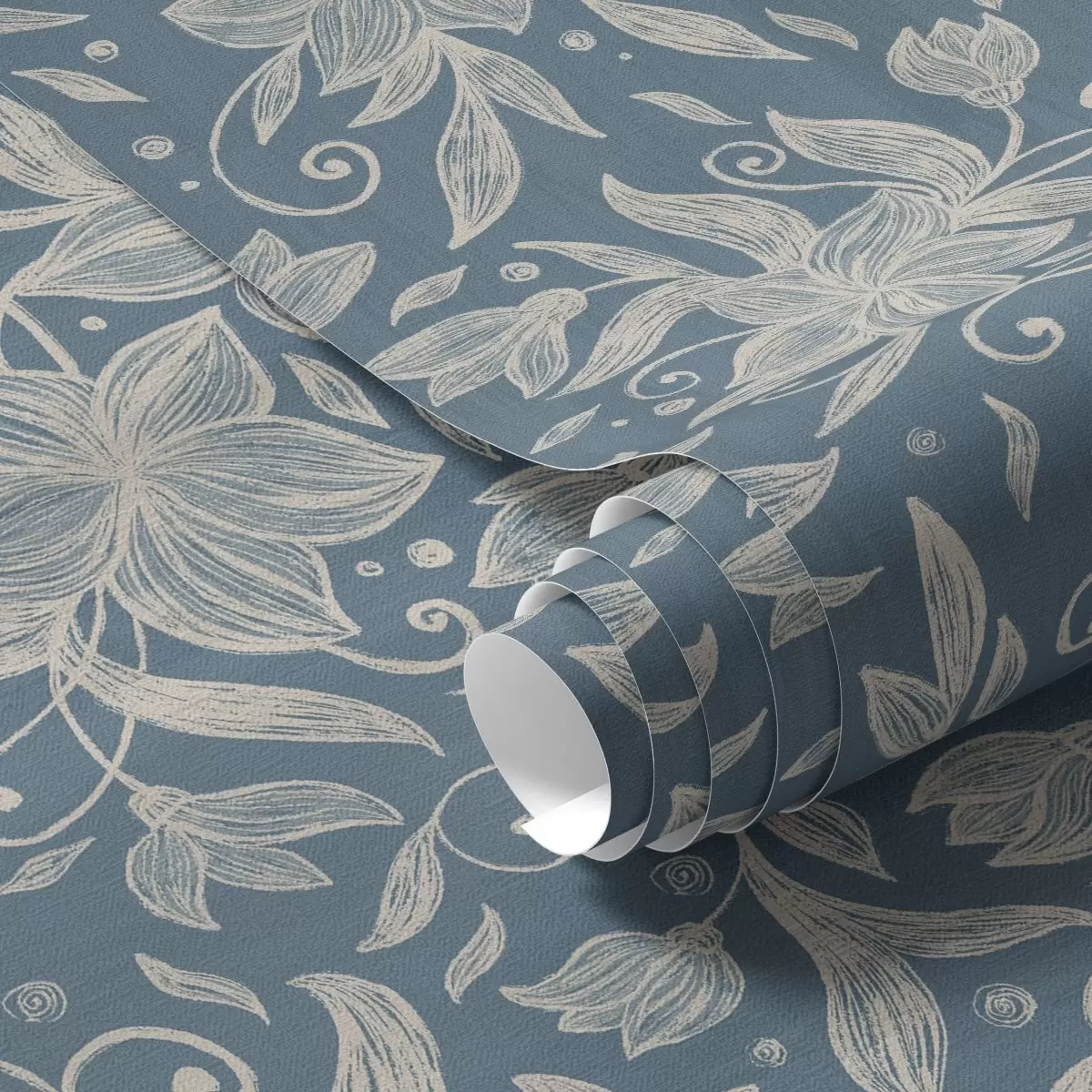Papel de parede Flores lineares creme sobre fundo azul, delicados arabescos Nr. a00630
