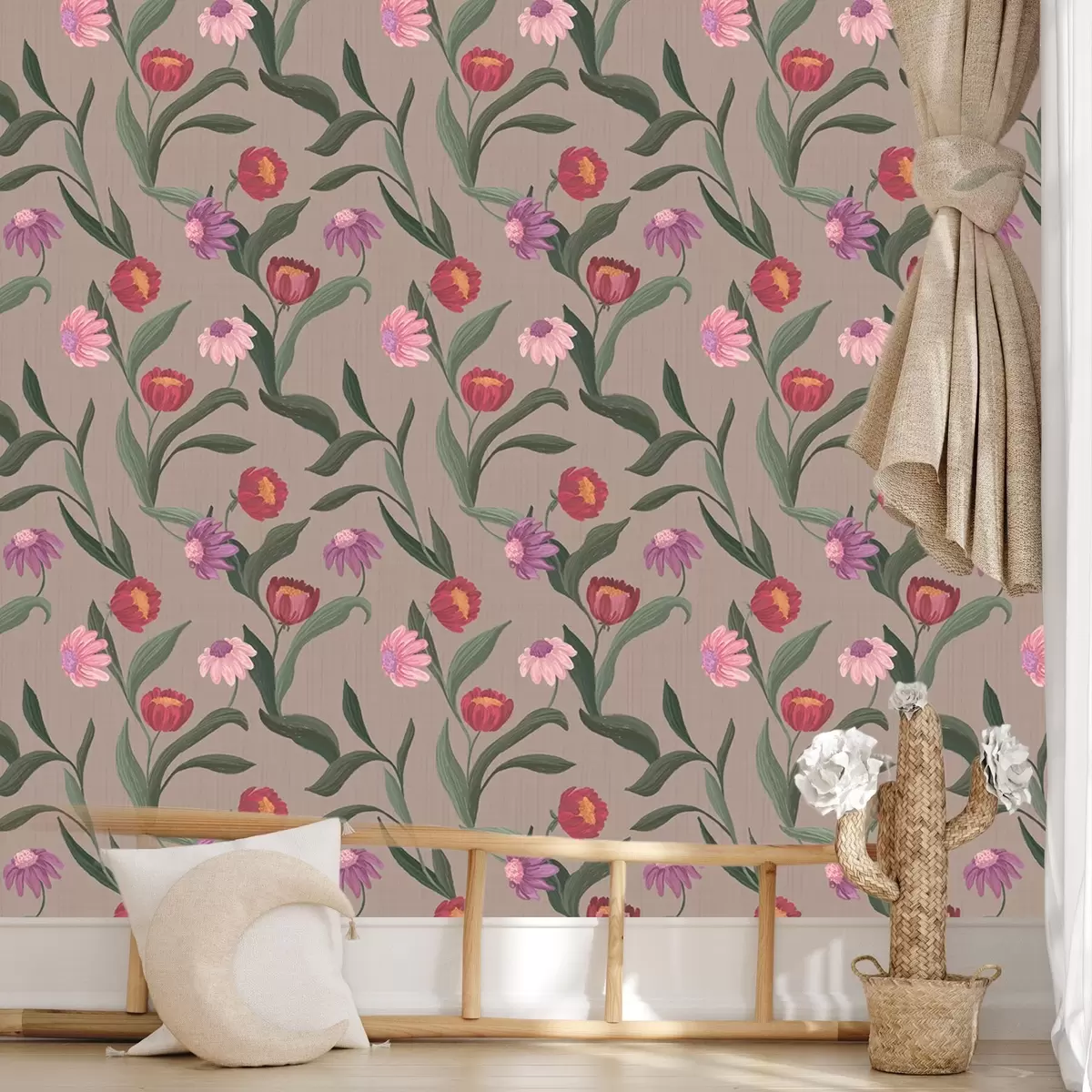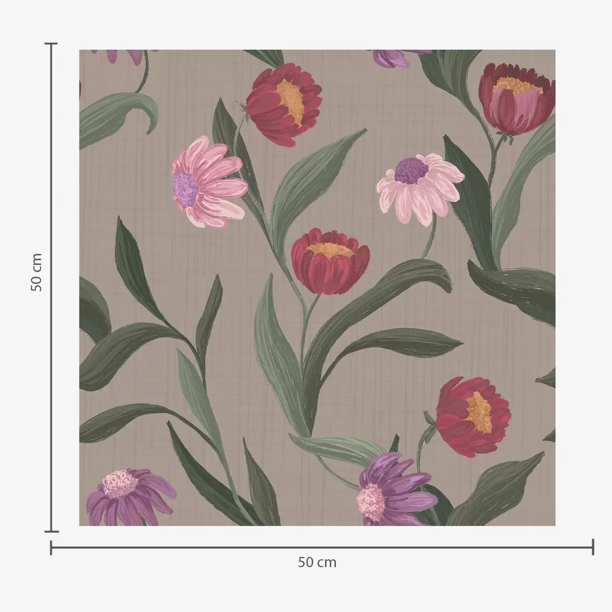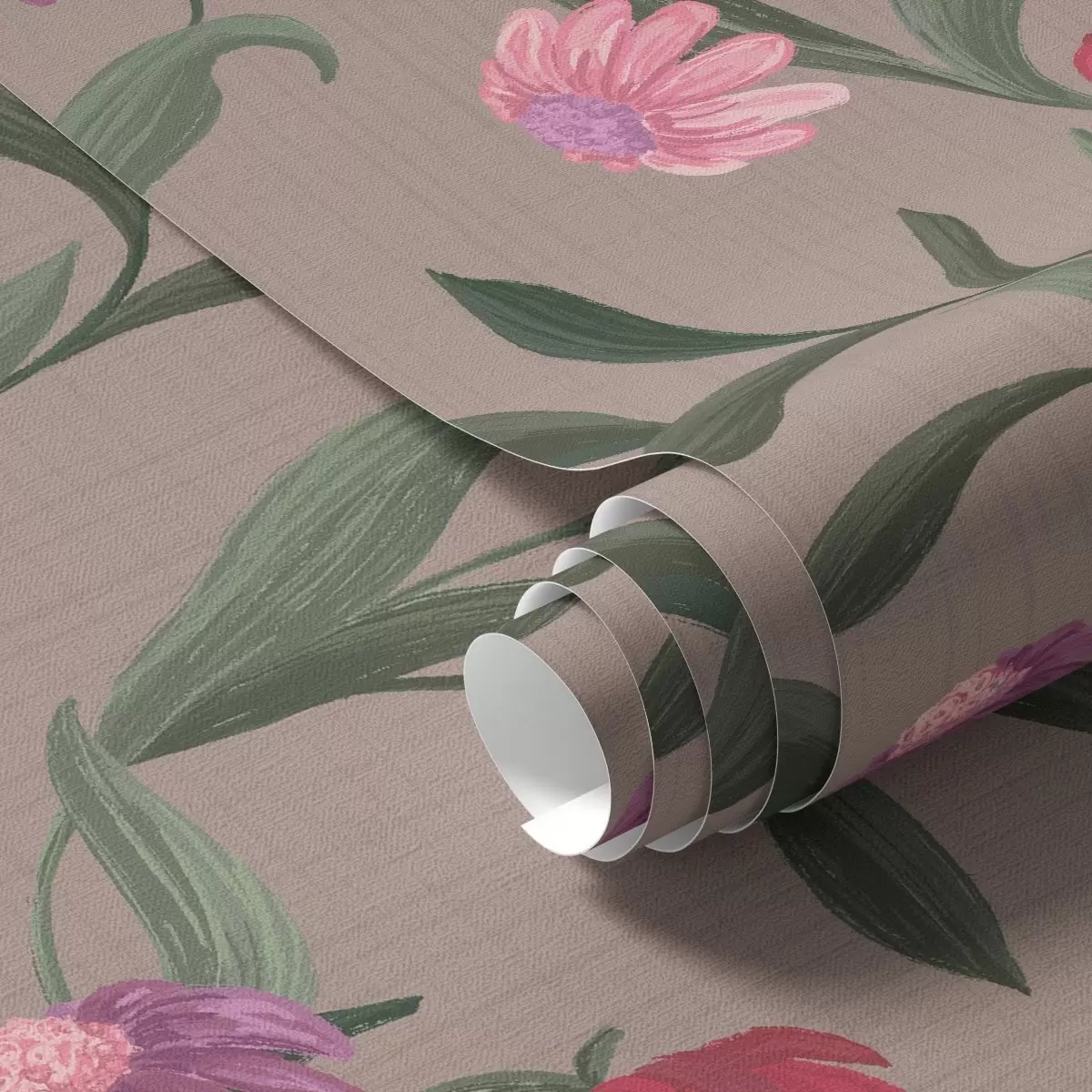Papel de parede Flores rosa-avermelhadas sobre fundo cinza-amarronzado, hastes longas Nr. a00631v2
