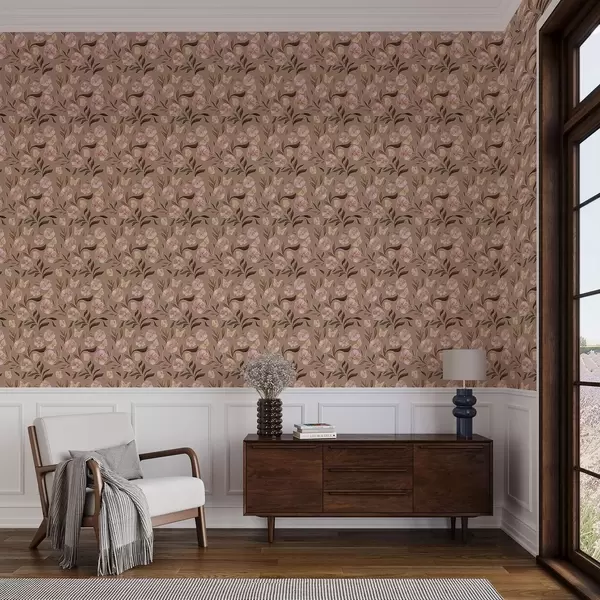 Papel de parede Flores cor-de-rosa e borboletas sobre um fundo castanho quente Nr. a00633v1