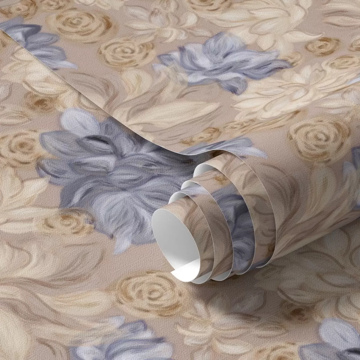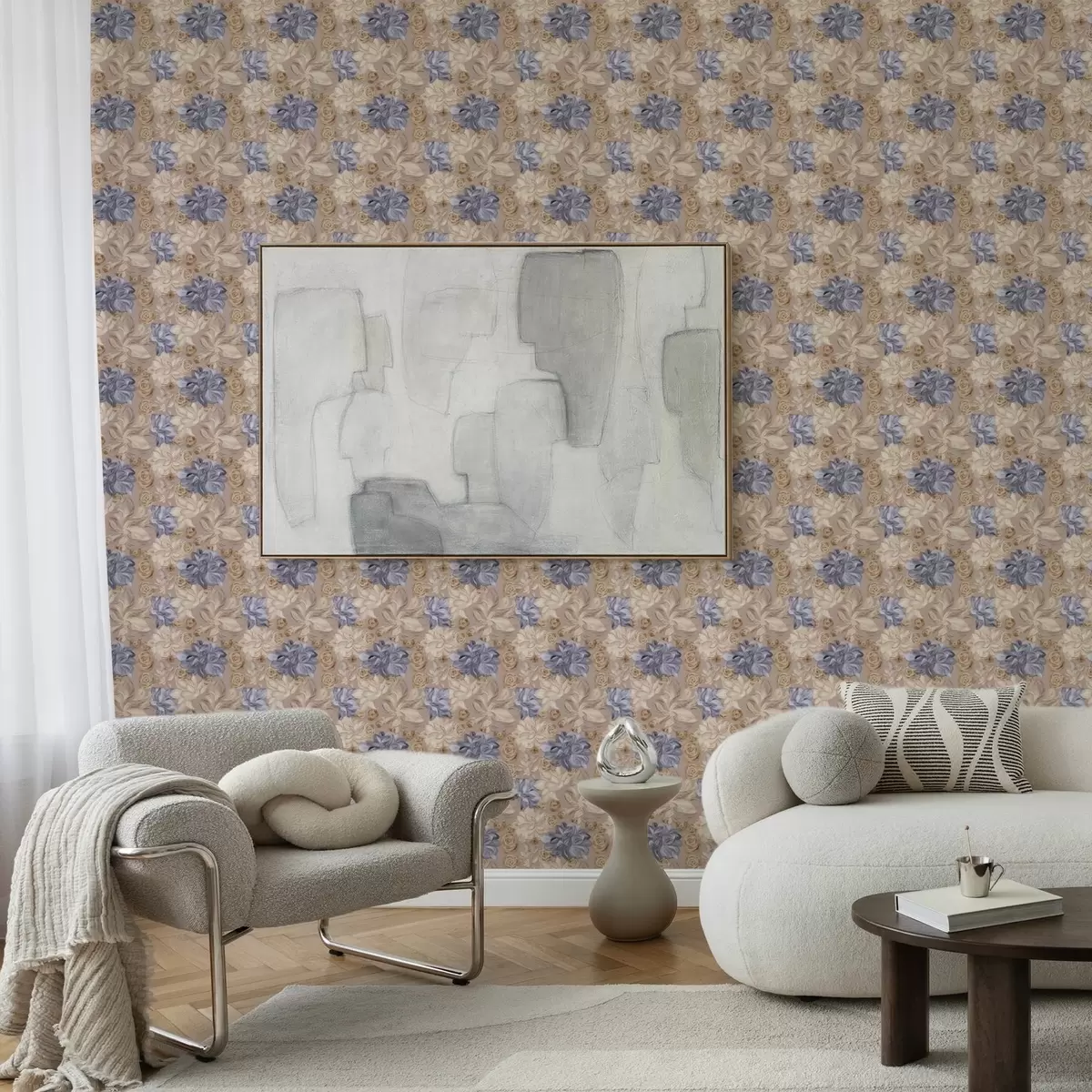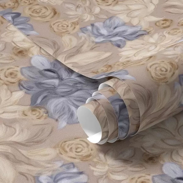 Papel de parede Creme exuberante e flores azuis em uma paleta de tons pastéis Nr. a00634