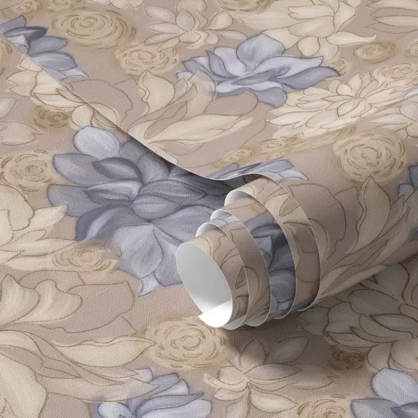 Papel de parede Flores creme e azuis sobre um fundo bege quente Nr. a00634v1
