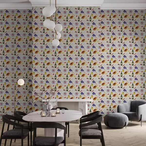 Papel de parede Impressão de cozinha com frutas, copos e pratos Nr. a00638