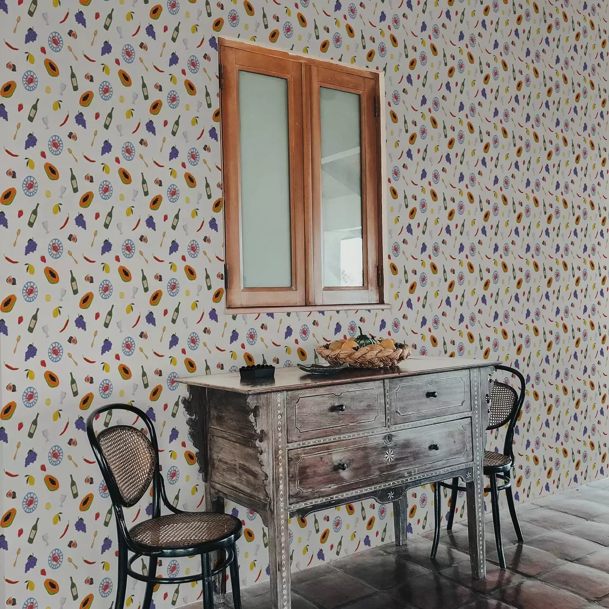 Papel de parede Frutas, vinho e especiarias dispostos sobre um fundo claro Nr. a00639