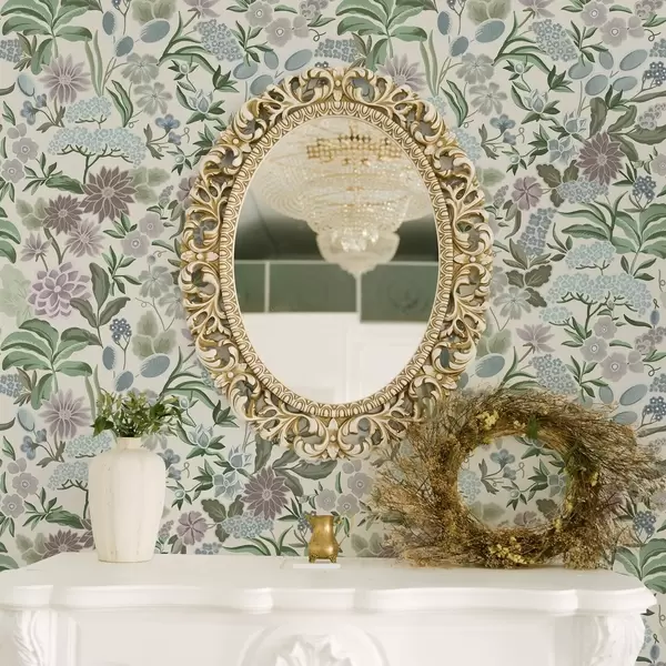 Papel de parede Flores e folhagens em tons pastel numa paleta azul menta Nr. a00642