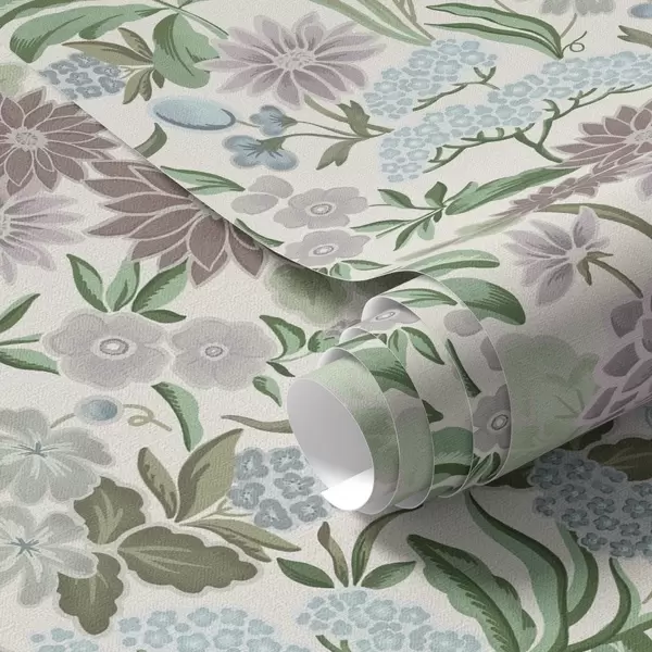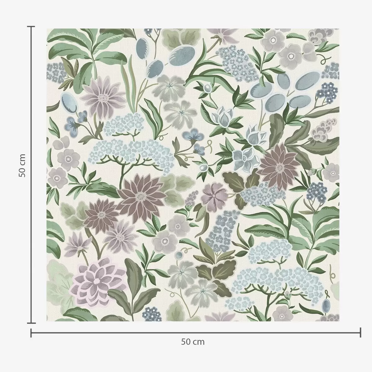 Papel de parede Flores e folhagens em tons pastel numa paleta azul menta Nr. a00642