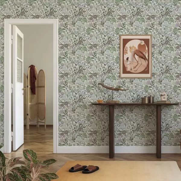 Papel de parede Flores e folhagens em tons pastel numa paleta azul menta Nr. a00642