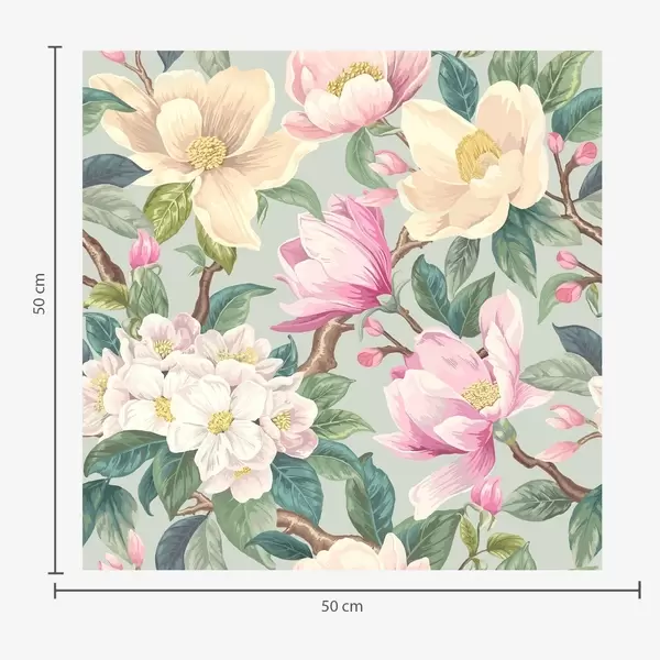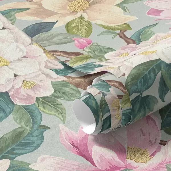 Papel de parede Magnólias e flores brancas sobre um fundo cinza-menta Nr. a00644