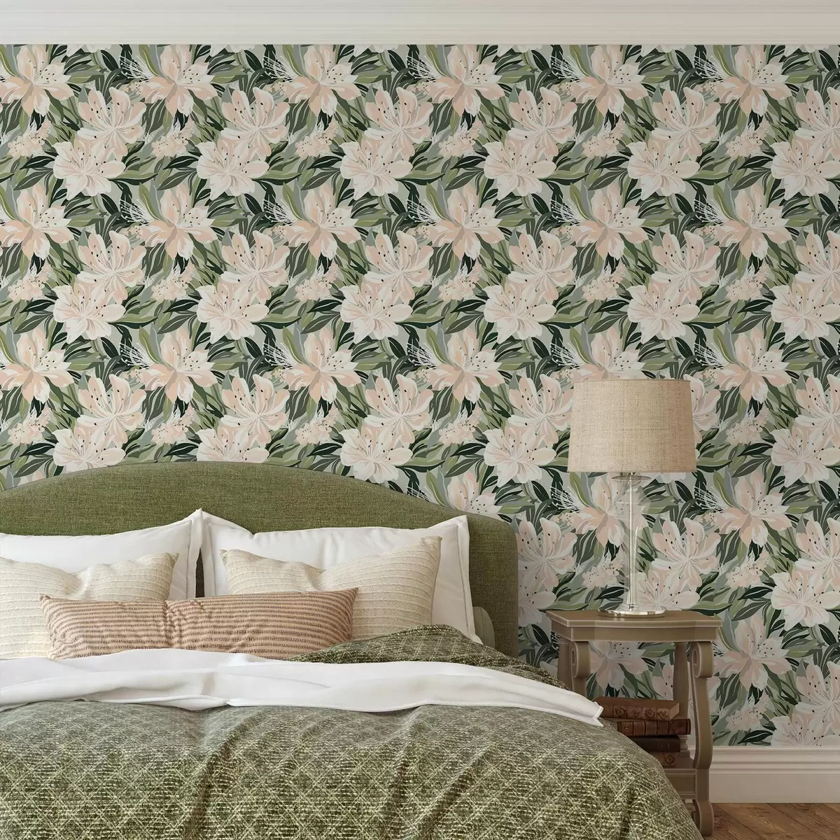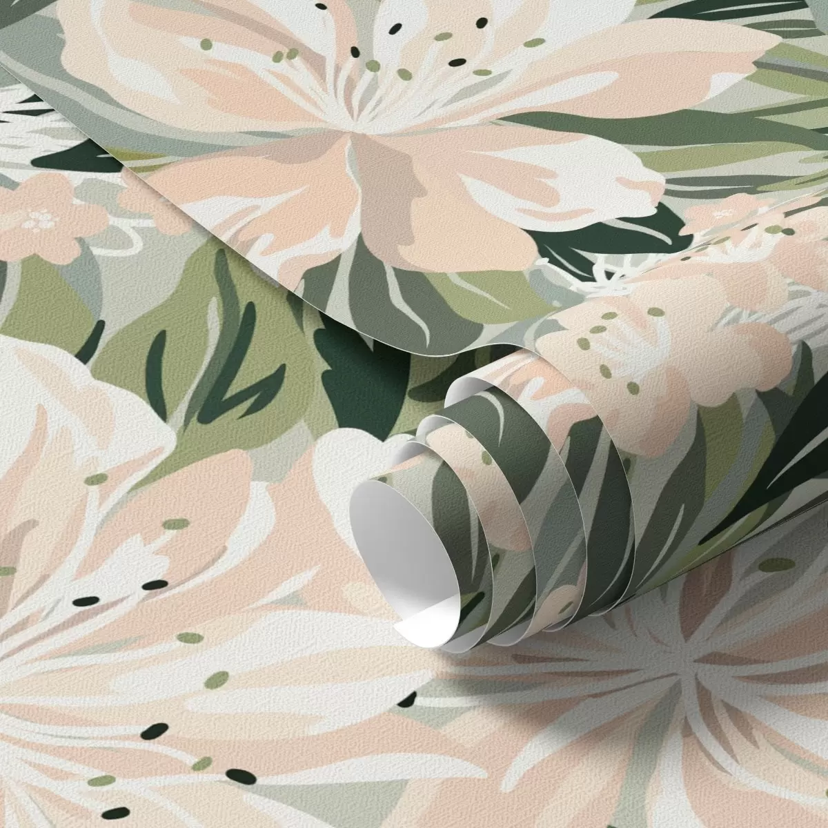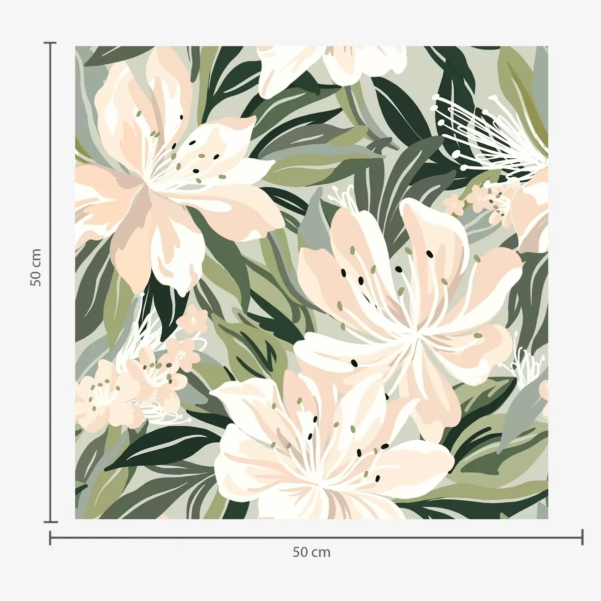 Papel de parede Grandes flores creme sobre fundo verde claro Nr. a00646