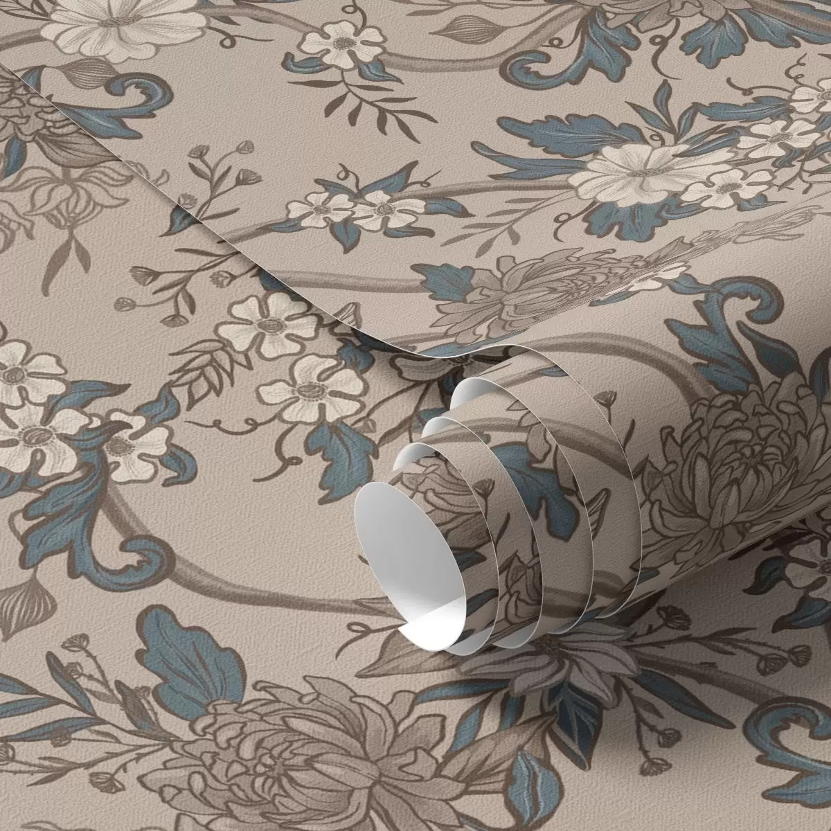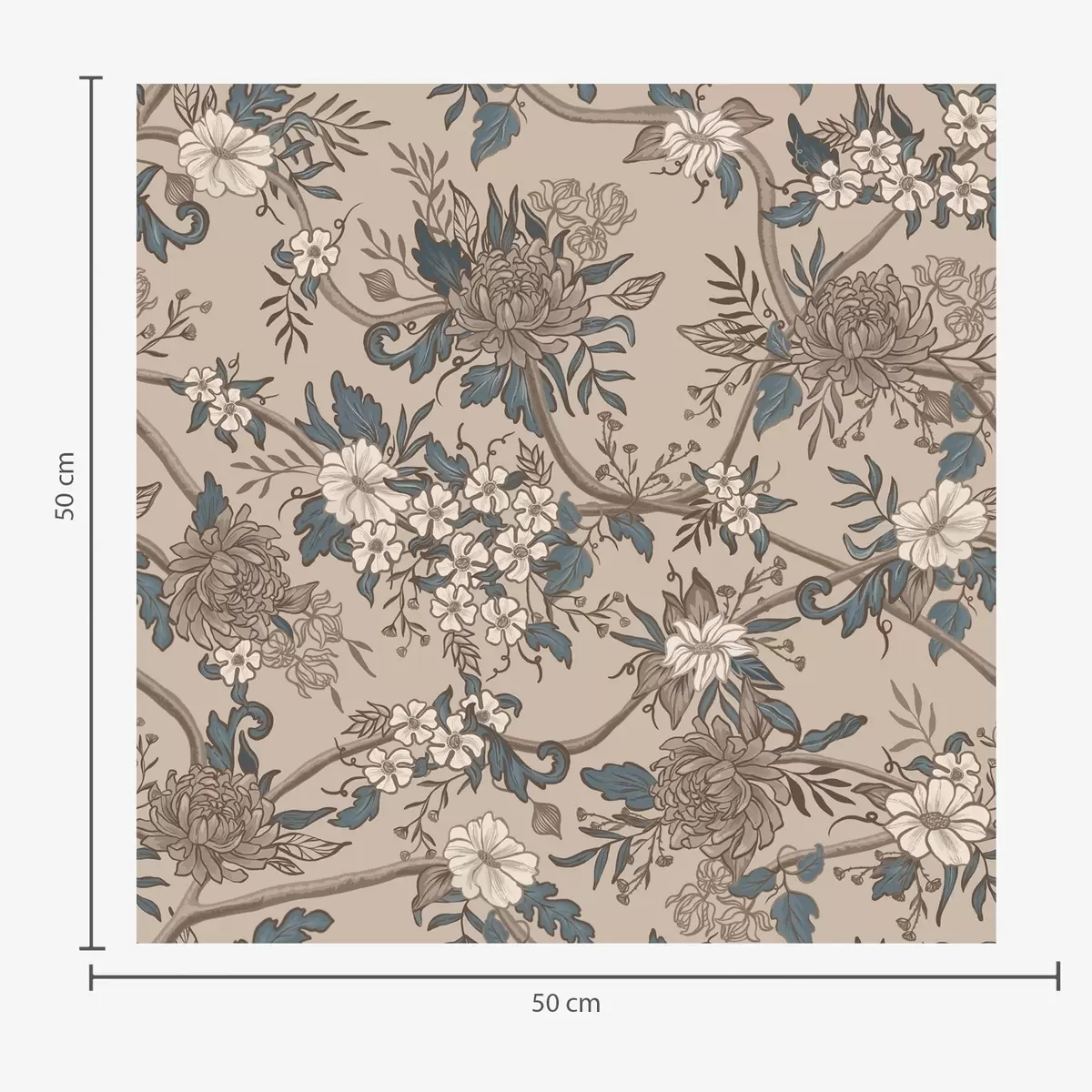 Papel de parede Flores grandes com folhas estampadas sobre um fundo bege quente Nr. a00649