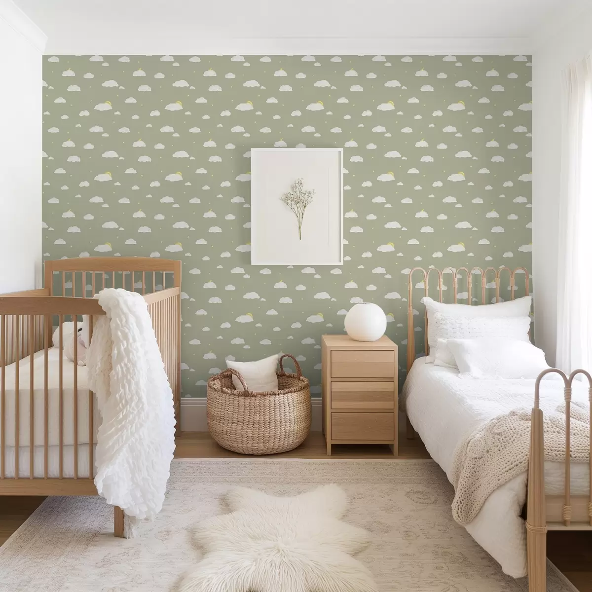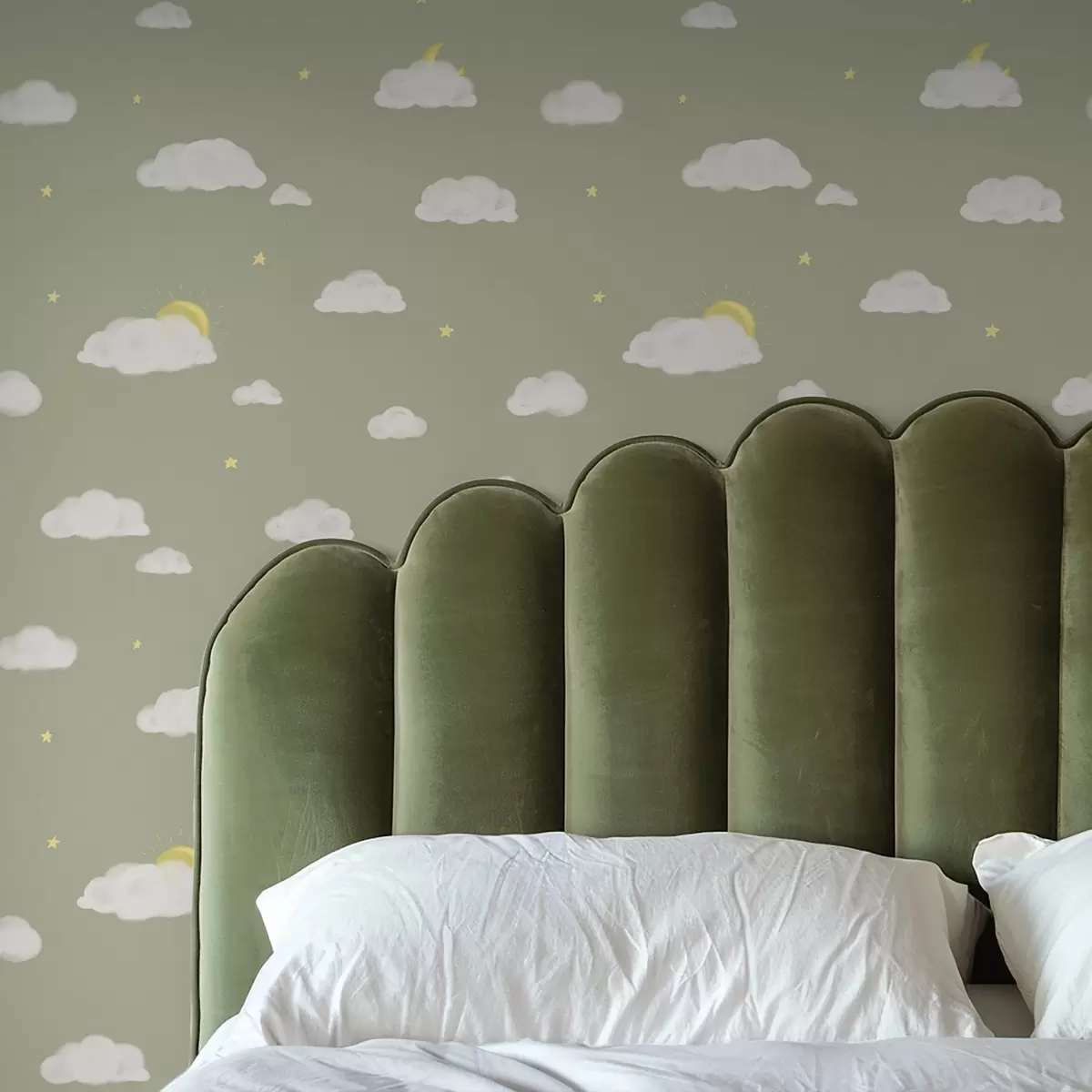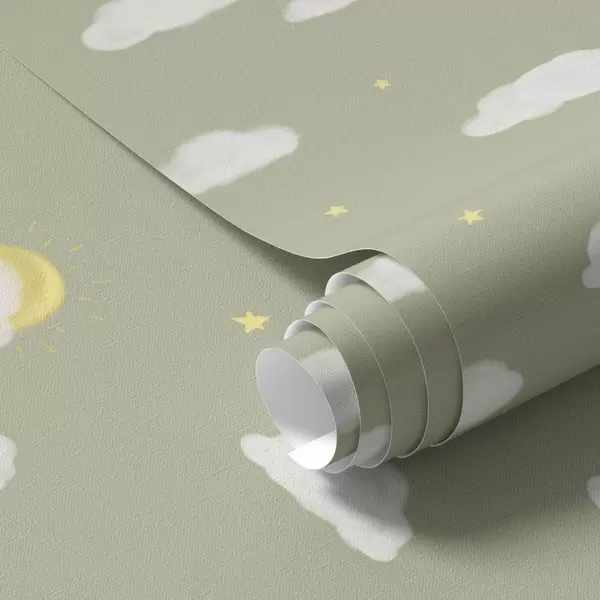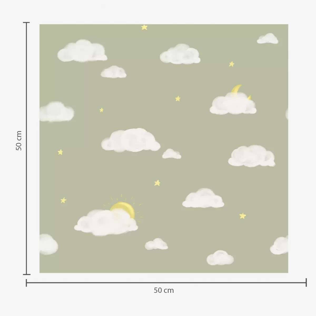 Papel de parede Nuvens suaves, estrelas e sol sobre um fundo cinza esverdeado Nr. a00652v1