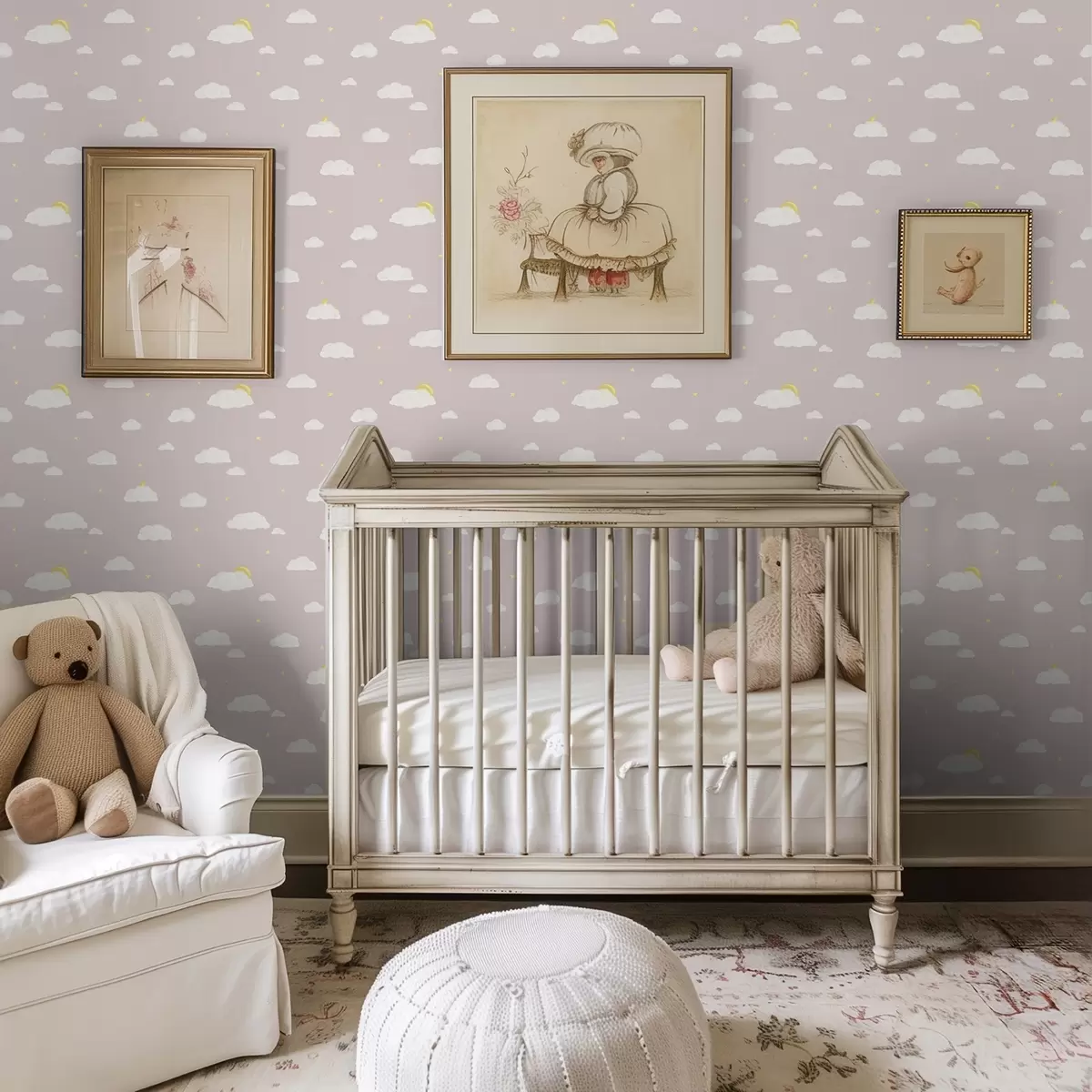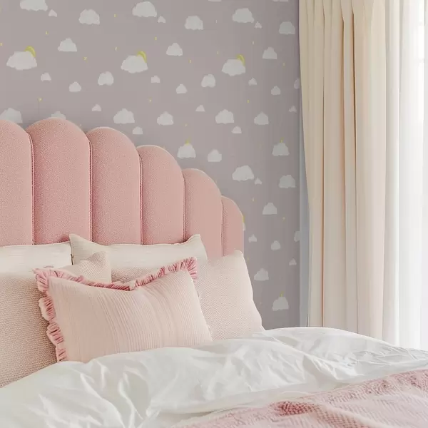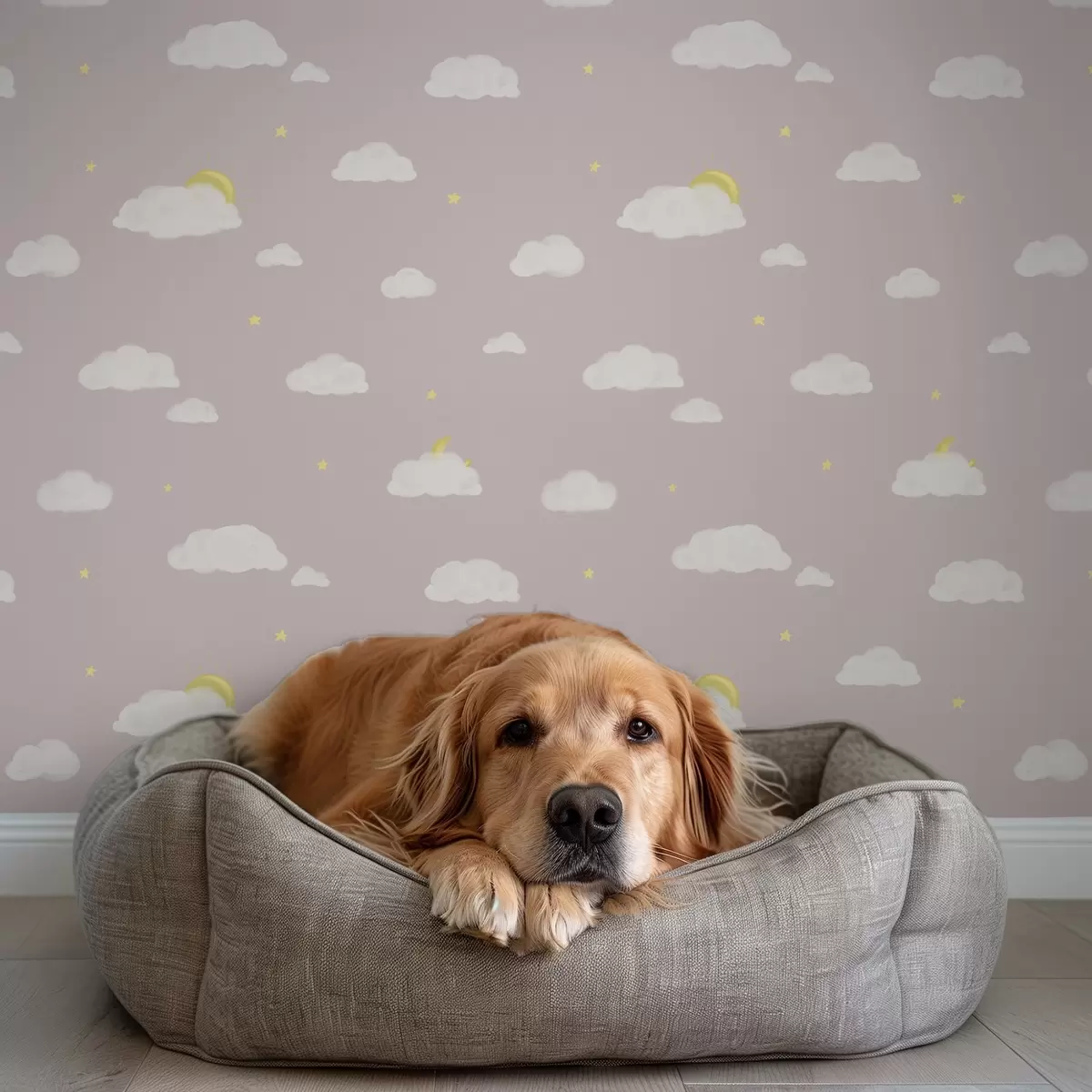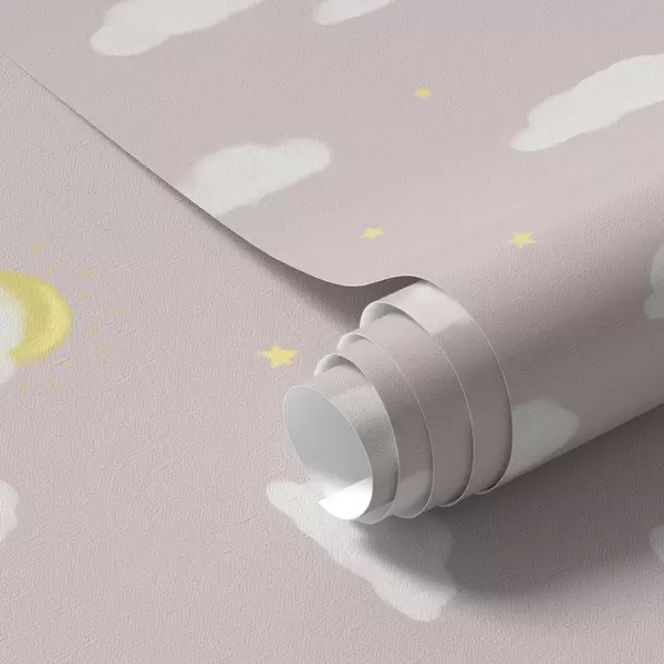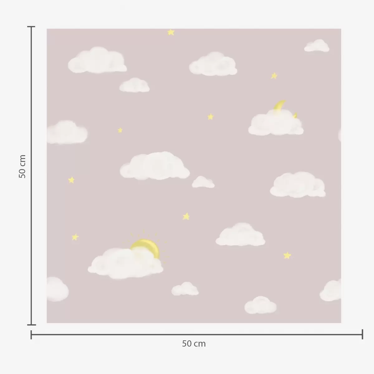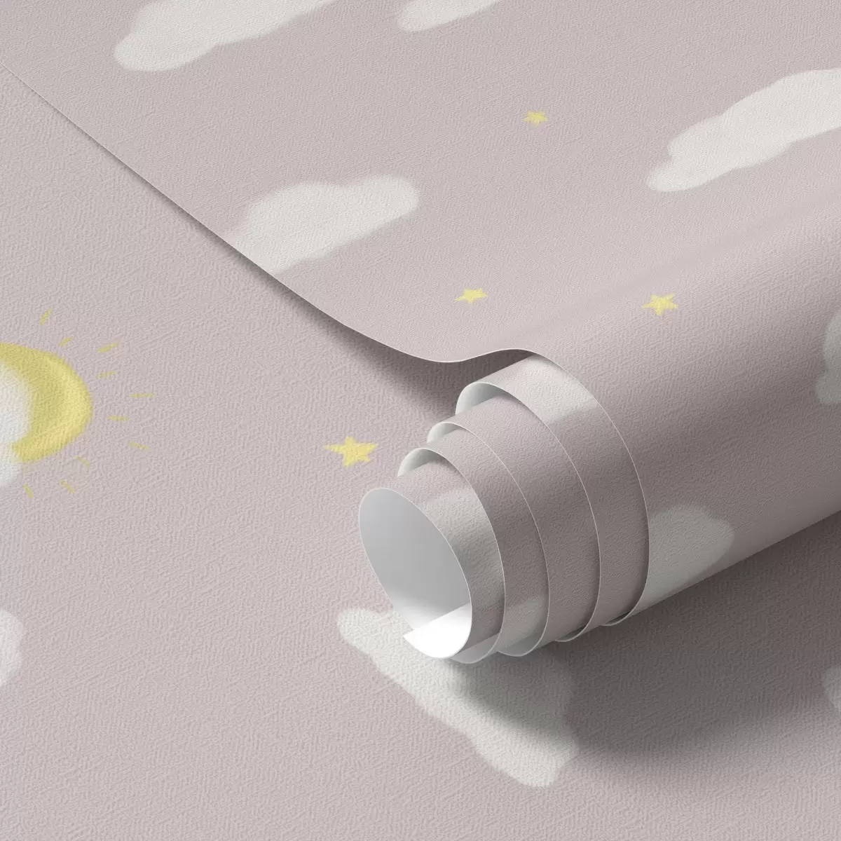 Papel de parede Nuvens suaves, estrelas e sol sobre um fundo cinza rosado Nr. a00652v2