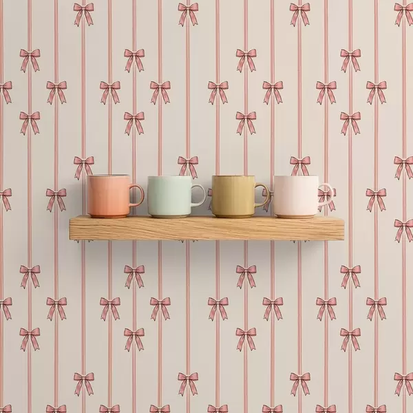 Papel de parede Fitas verticais com laços, fundo marfim Nr. a00653