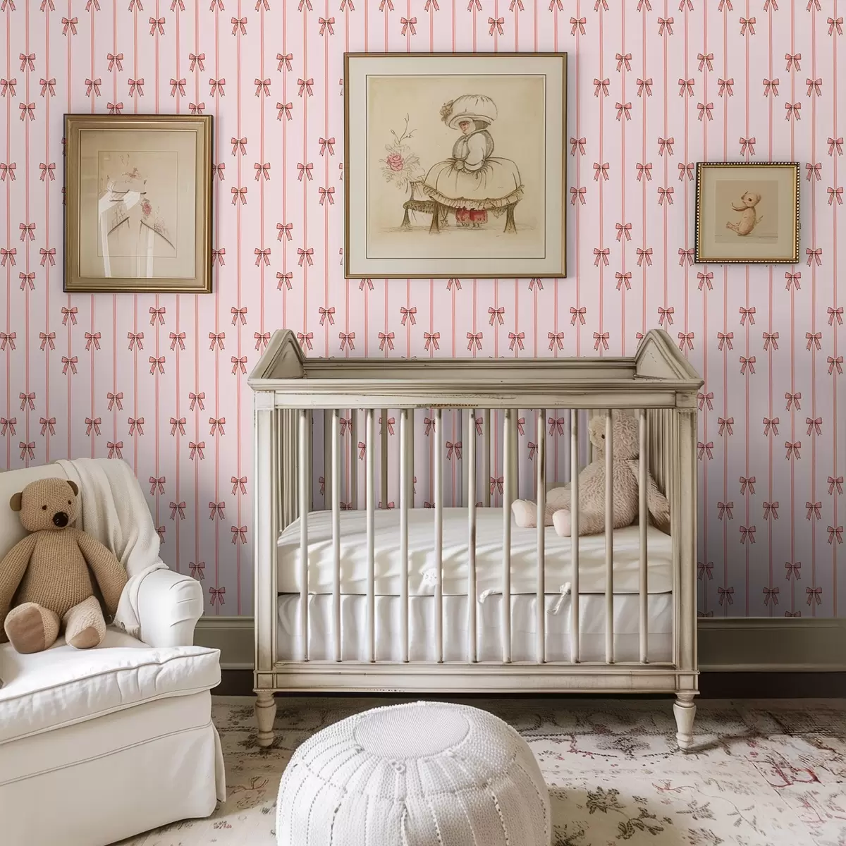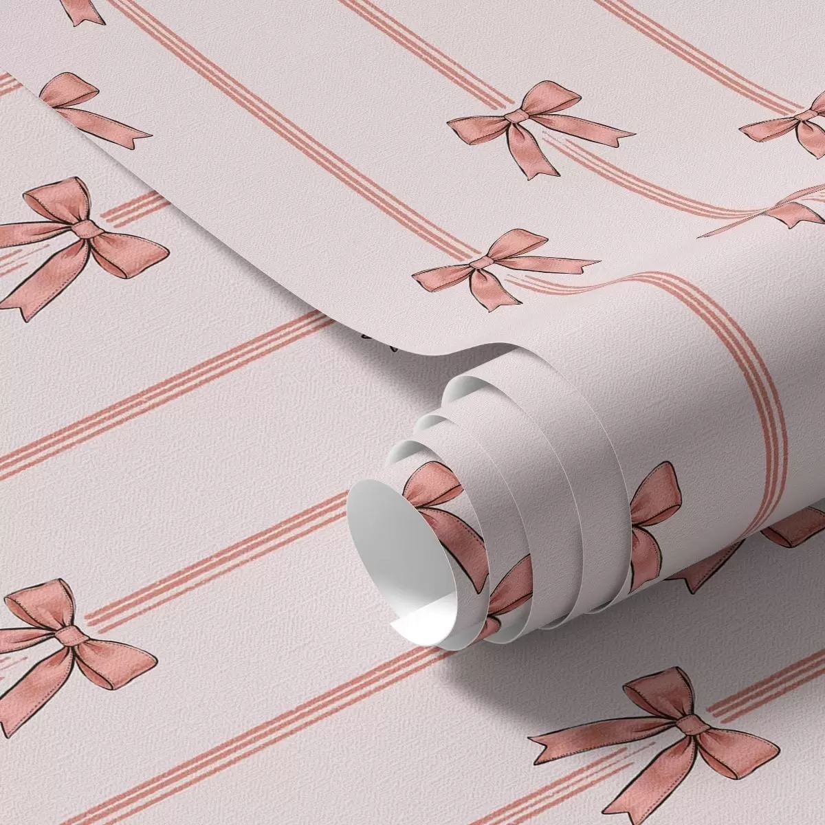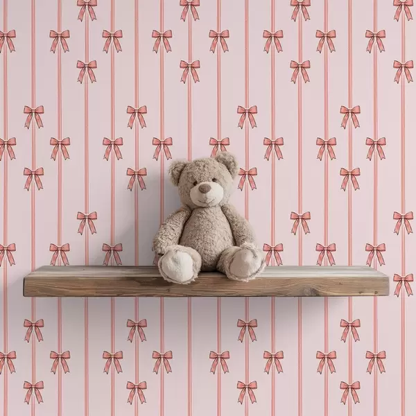 Papel de parede Fitas verticais com laços, fundo rosa pálido Nr. a00653v2