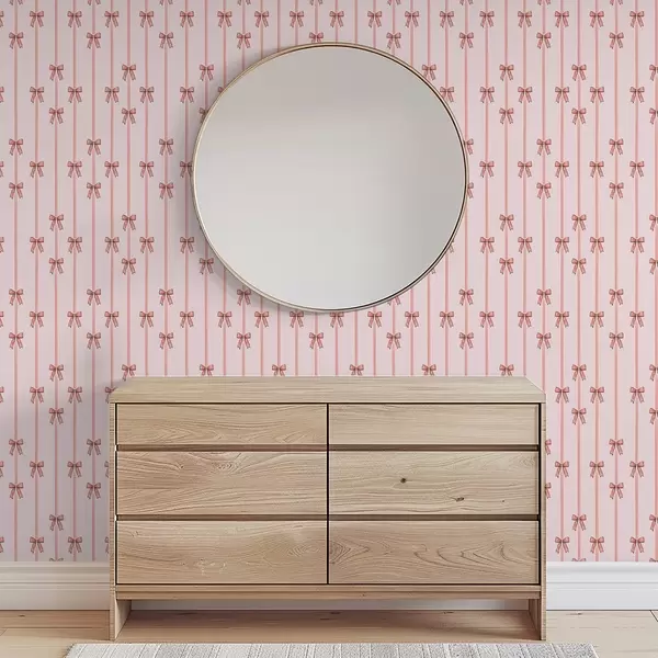Papel de parede Fitas verticais com laços, fundo rosa pálido Nr. a00653v2