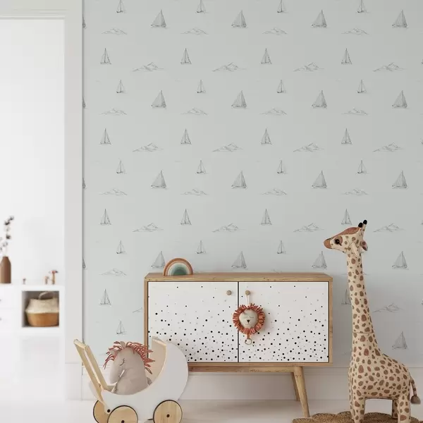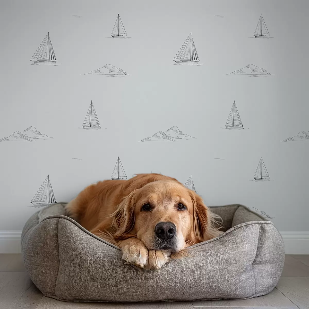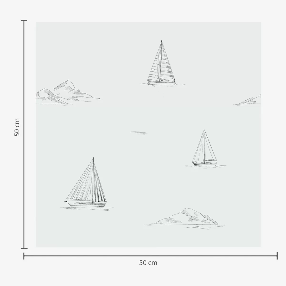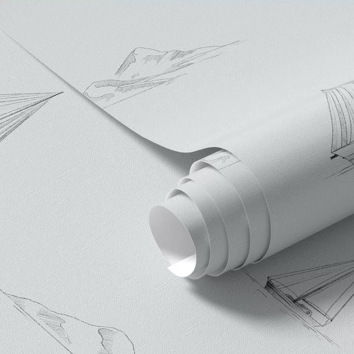 Papel de parede Esboce iates e ilhas, fundo azul-acinzentado fresco Nr. a00654