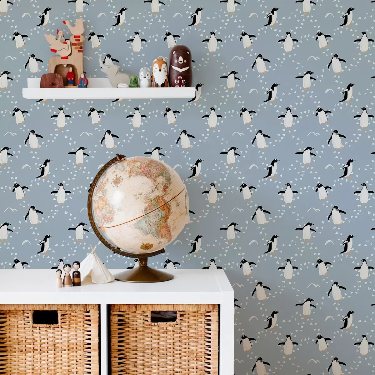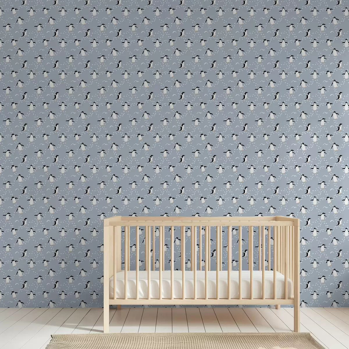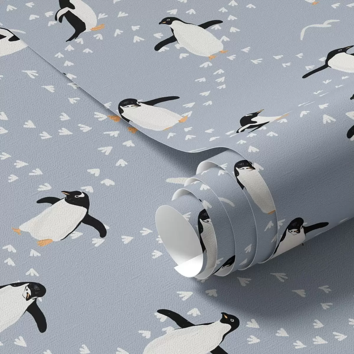 Papel de parede Pinguins em azul acinzentado com pegadas Nr. a00655