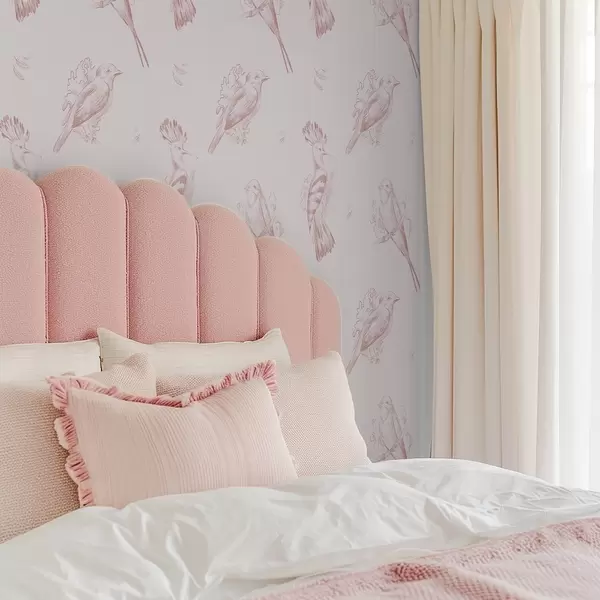 Papel de parede Toile com pássaros: esboço de pássaros, fundo rosa suave Nr. a00656