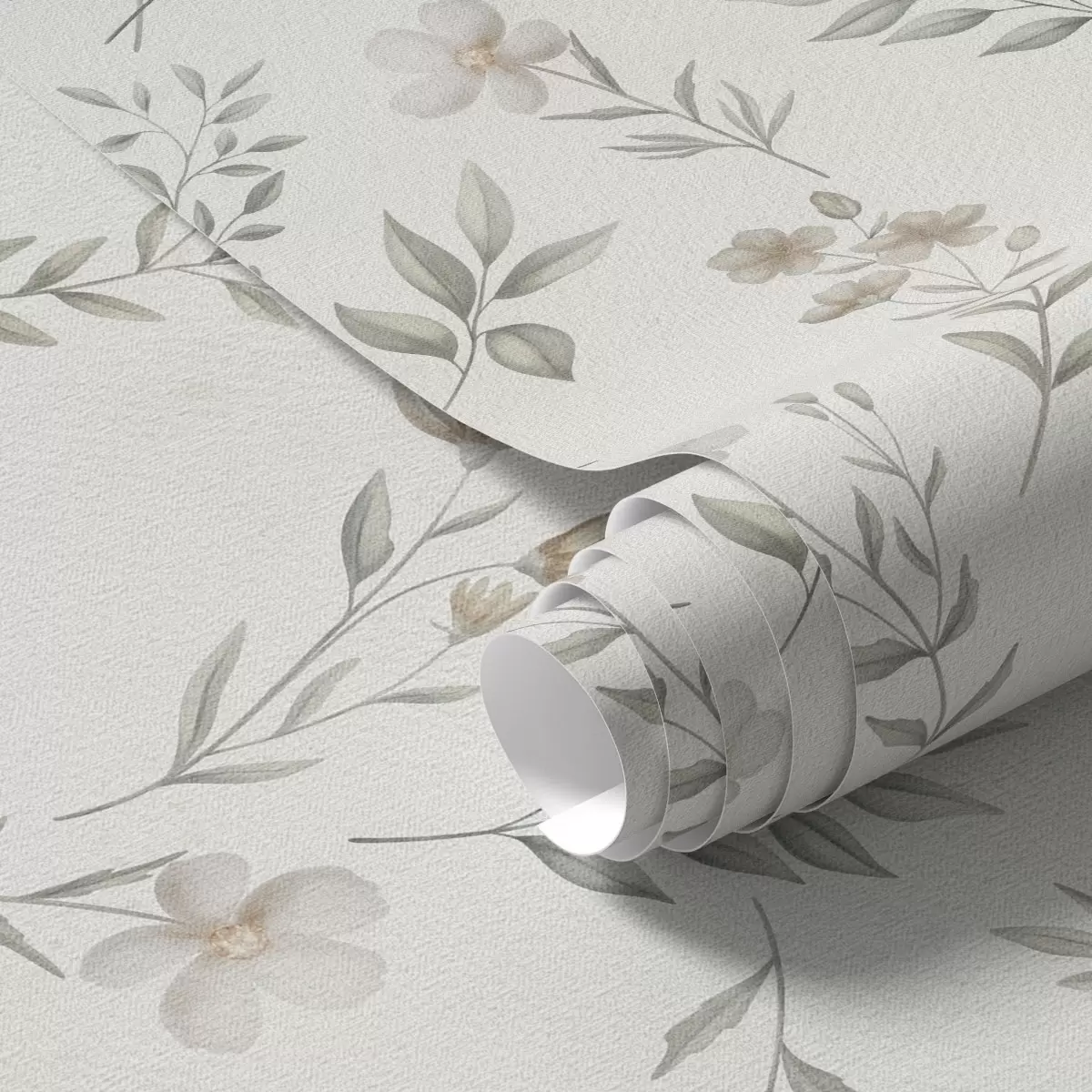 Papel de parede Pequenos galhos e flores em aquarela sobre um fundo claro Nr. a00665