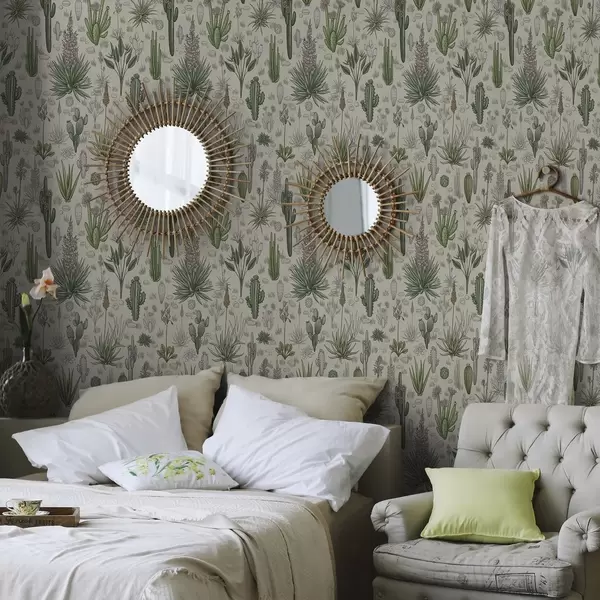Papel de parede Cactos e suculentas sobre um fundo quente, impressão detalhada Nr. a00666