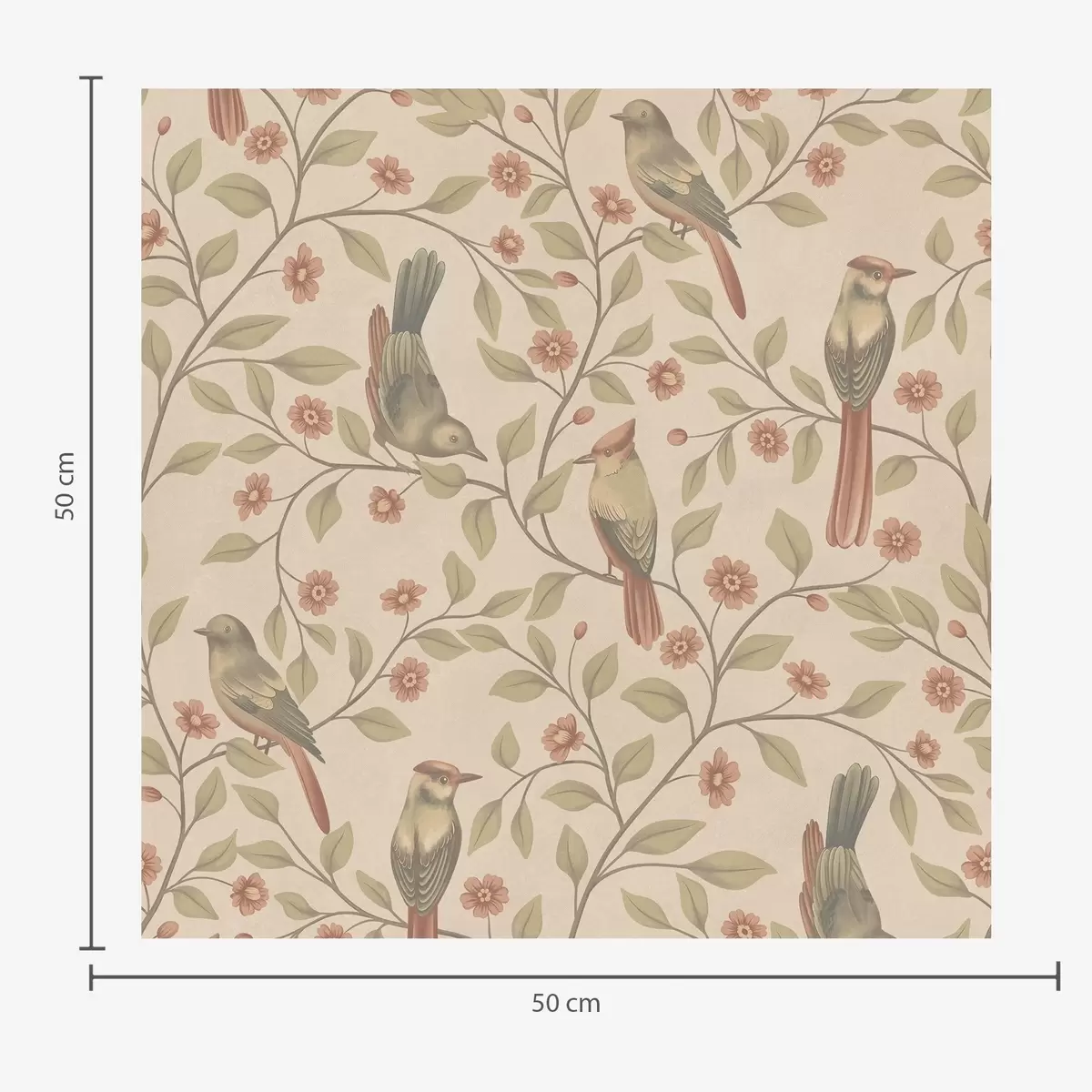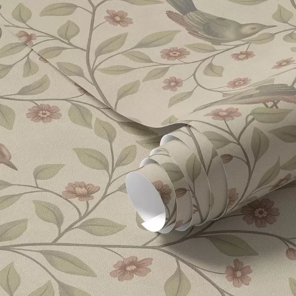 Papel de parede Pássaros em galhos floridos, fundo bege quente Nr. a00670