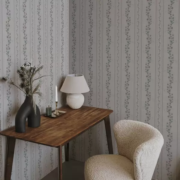 Papel de parede Listras delicadas com flores de lavanda, vintage Nr. a00671