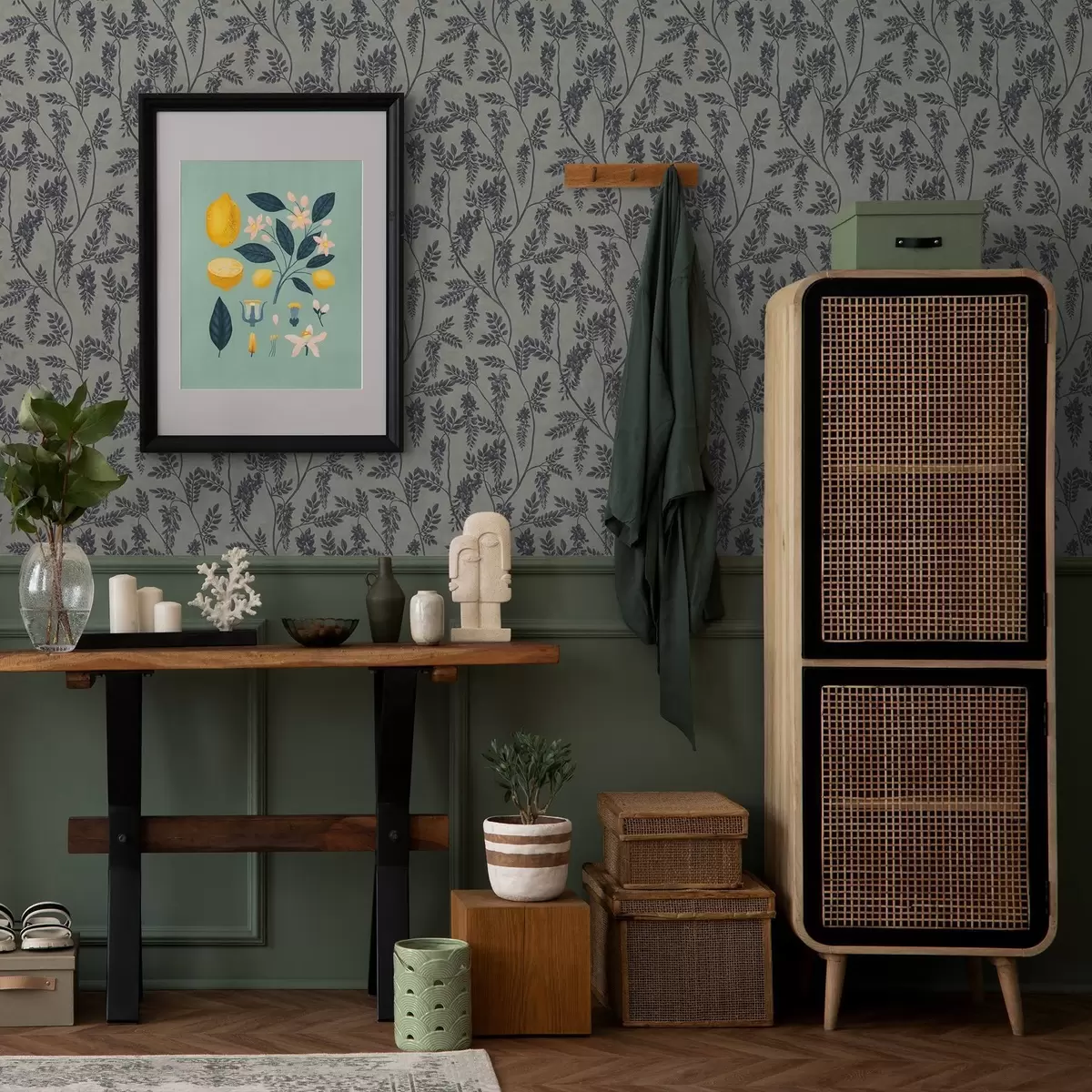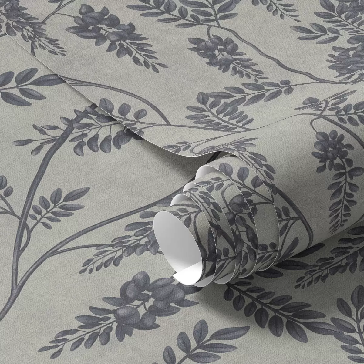 Papel de parede Galhos com flores escuras sobre um fundo cinza-bege Nr. a00672