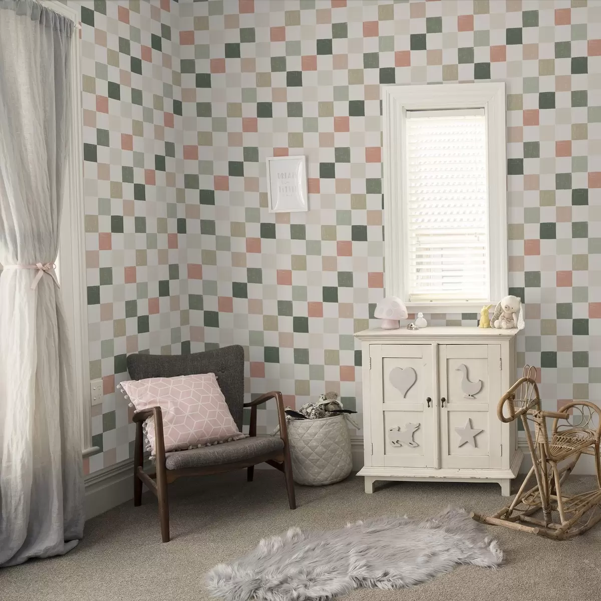 Papel de parede Xadrez suave em tons pastel de verde, rosa e bege Nr. a00676