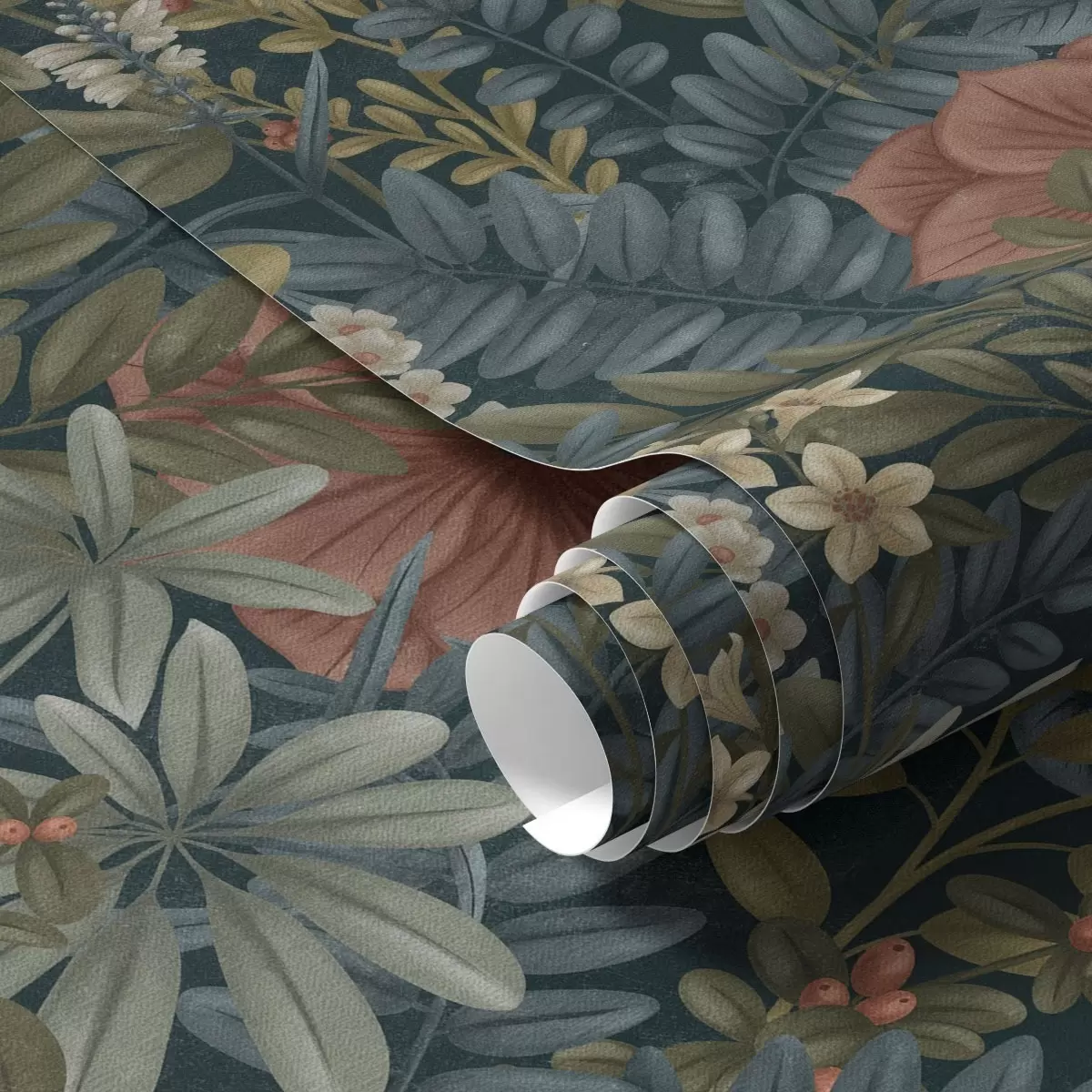 Papel de parede Fundo escuro com flores e folhas densas em tons quentes Nr. a00678