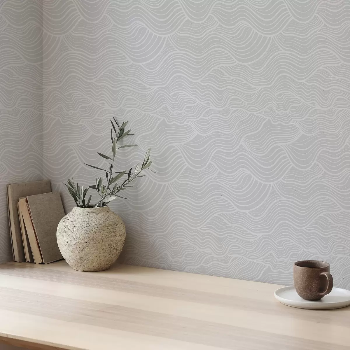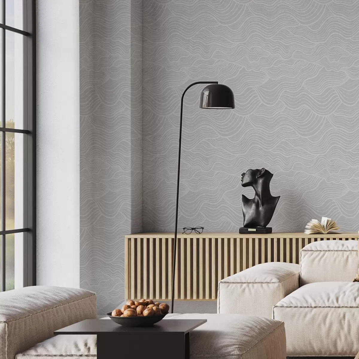 Papel de parede Ornamento ondulado: linhas claras sobre fundo cinza Nr. a00681v2