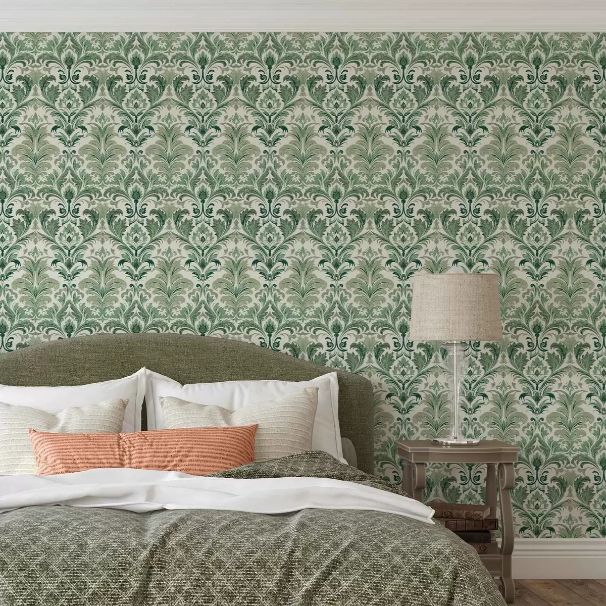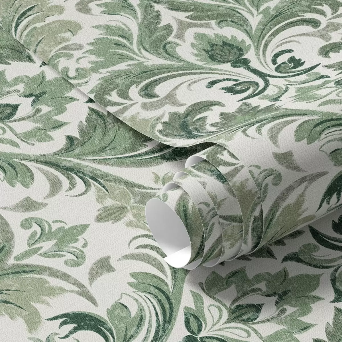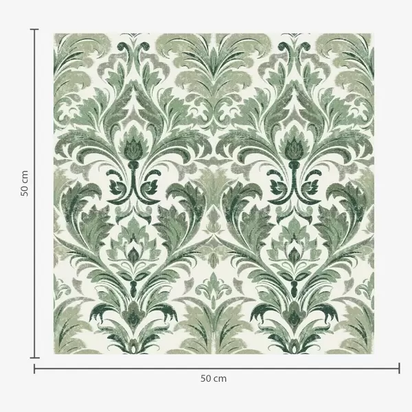 Papel de parede Damasco verde com textura em relevo sobre fundo claro Nr. a00692