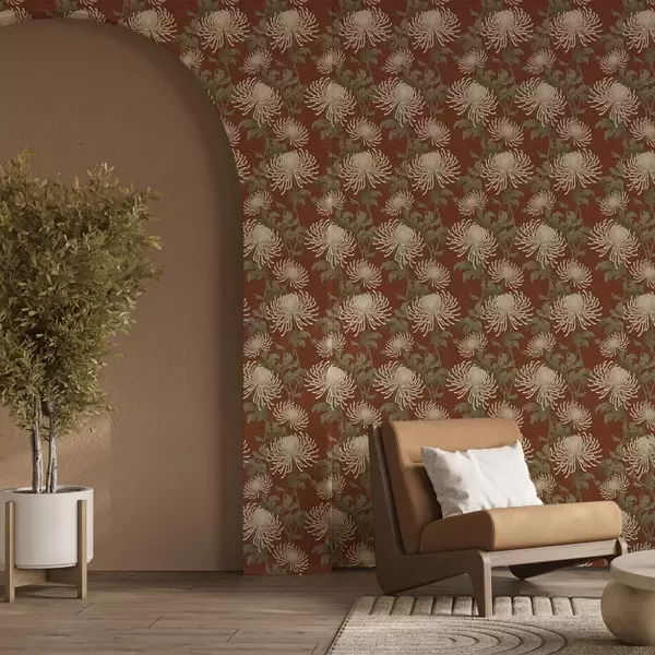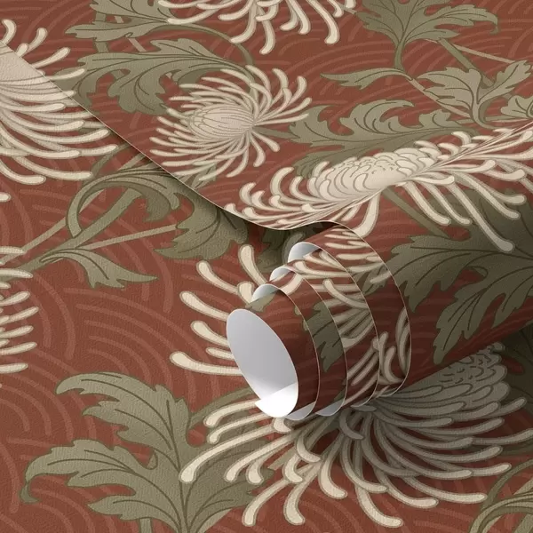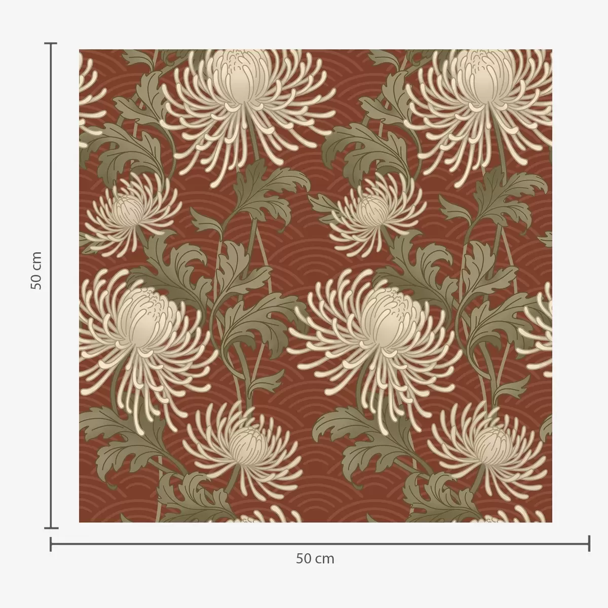 Papel de parede Crisântemos creme sobre fundo terracota, estilo asiático Nr. a00693