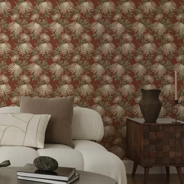 Papel de parede Crisântemos creme sobre fundo terracota, estilo asiático Nr. a00693