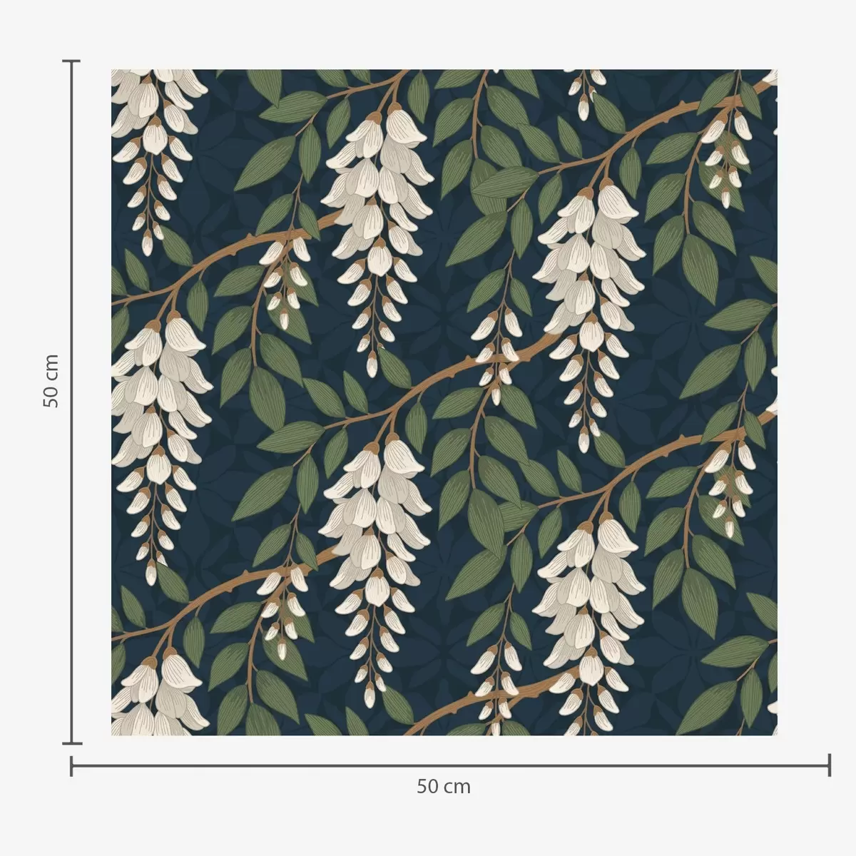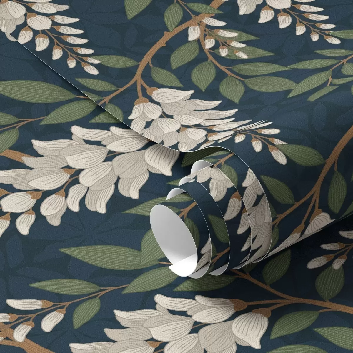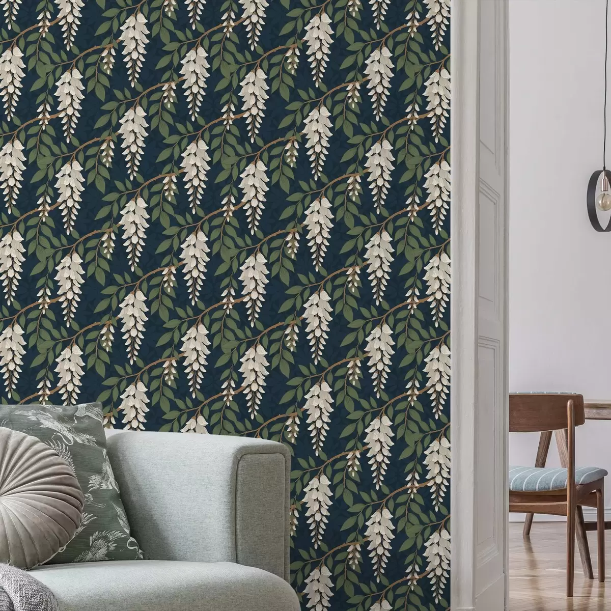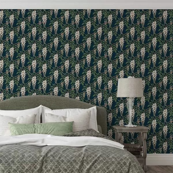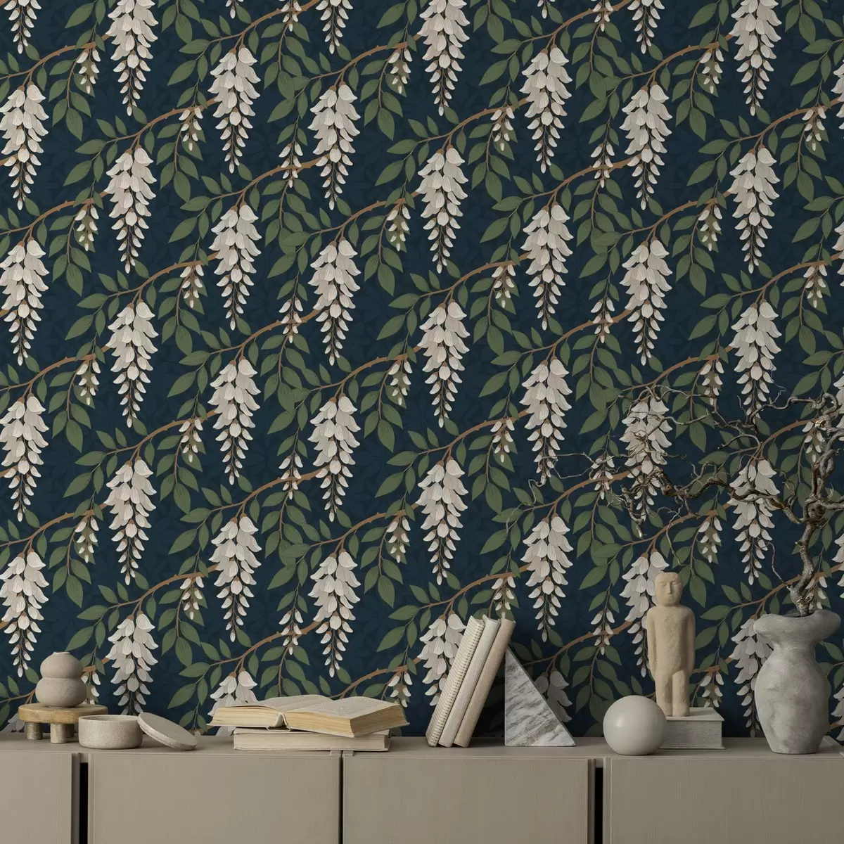 Papel de parede Glicínia marfim sobre fundo azul-petróleo escuro Nr. a00694v1